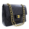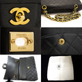 CHANEL Classic Double Flap Chain Shoulder Bag Black Lambskin Purse k88