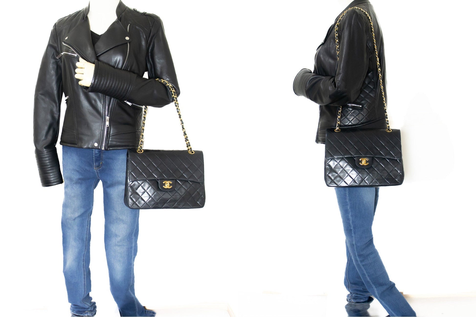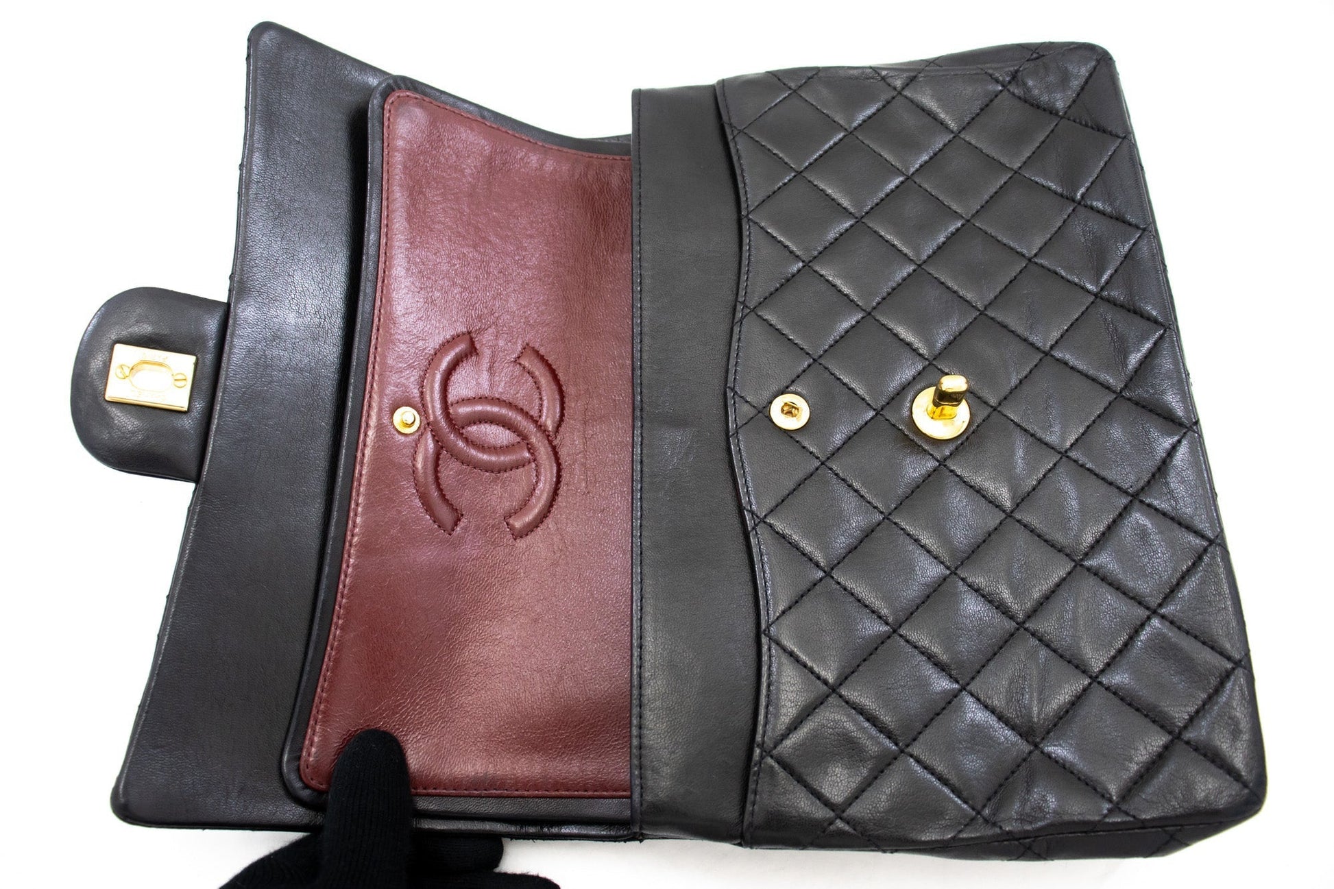 An authentic CHANEL Classic Double Flap Chain Shoulder Bag Black made of black Lambskin Purse k88 This item is Vintage / Classic. The year of manufacture would be 1989-1991.