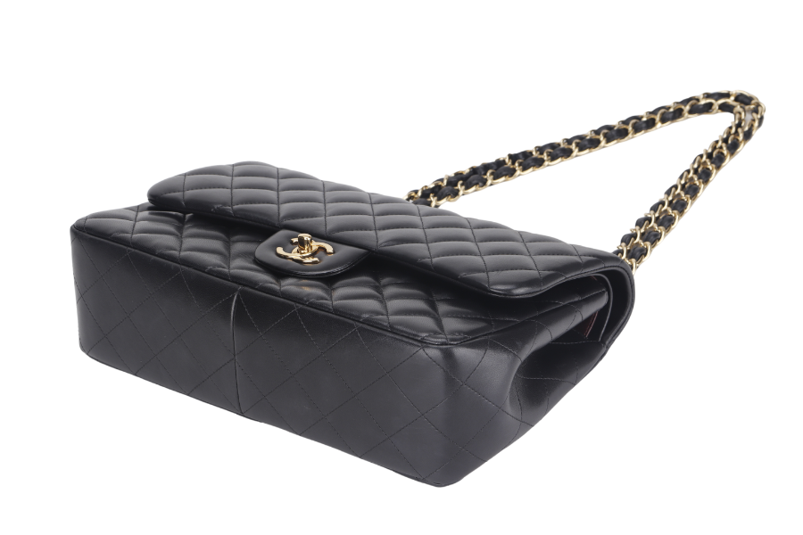 CHANEL CLASSIC DOUBLE FLAP JUMBO BLACK LAMBSKIN LEATHER GHW (1685xxxx), WITH AND DUST COVER