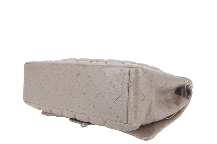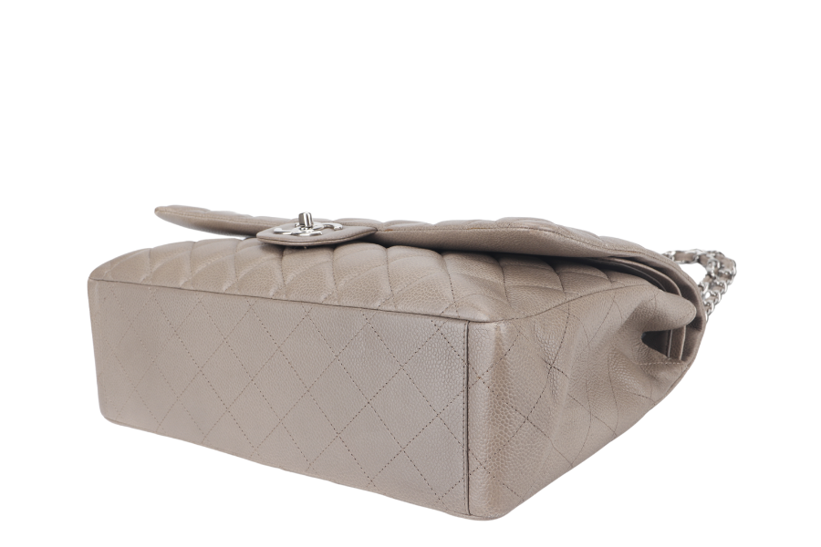 CHANEL CLASSIC DOUBLE FLAP MAXI (1444xxxx) BROWN CAVIAR LEATHER SILVER HARDWARE WITH AND DUST COVER