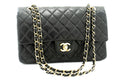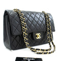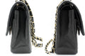 CHANEL Classic Double Flap Medium Chain Shoulder Bag Black Lamb k34