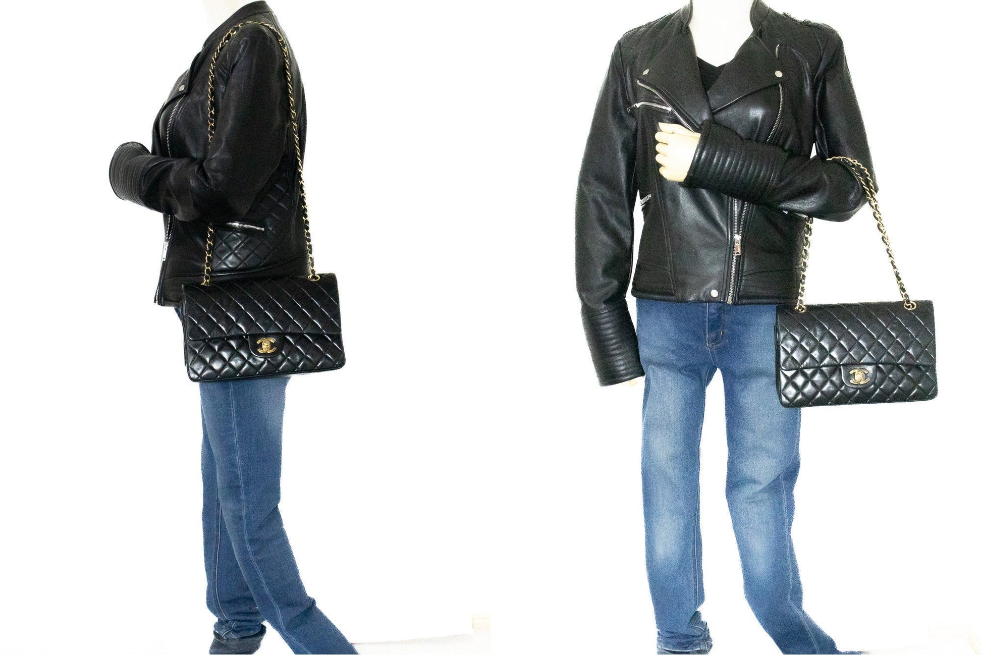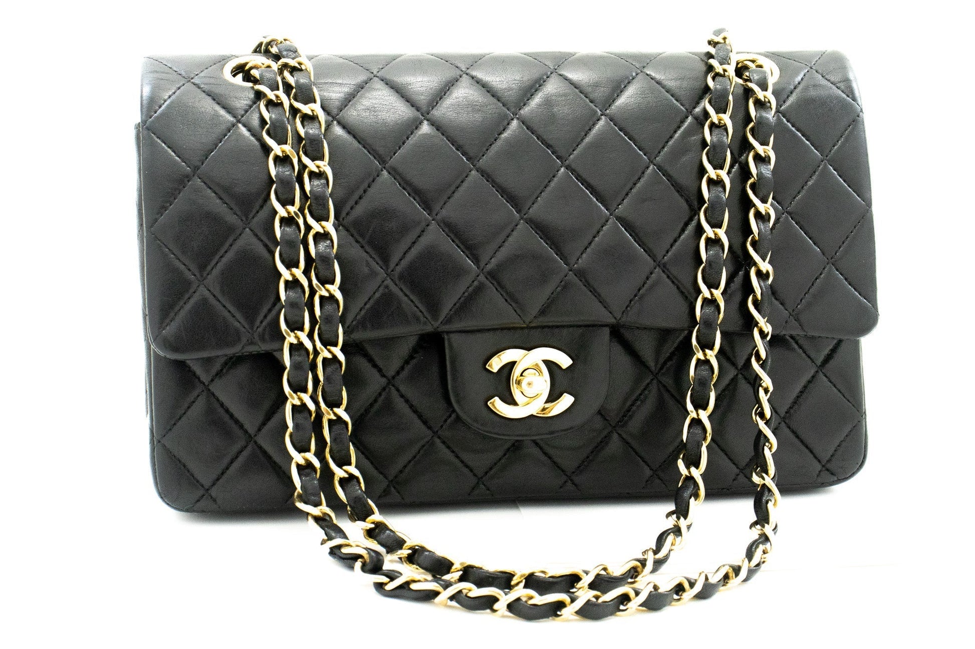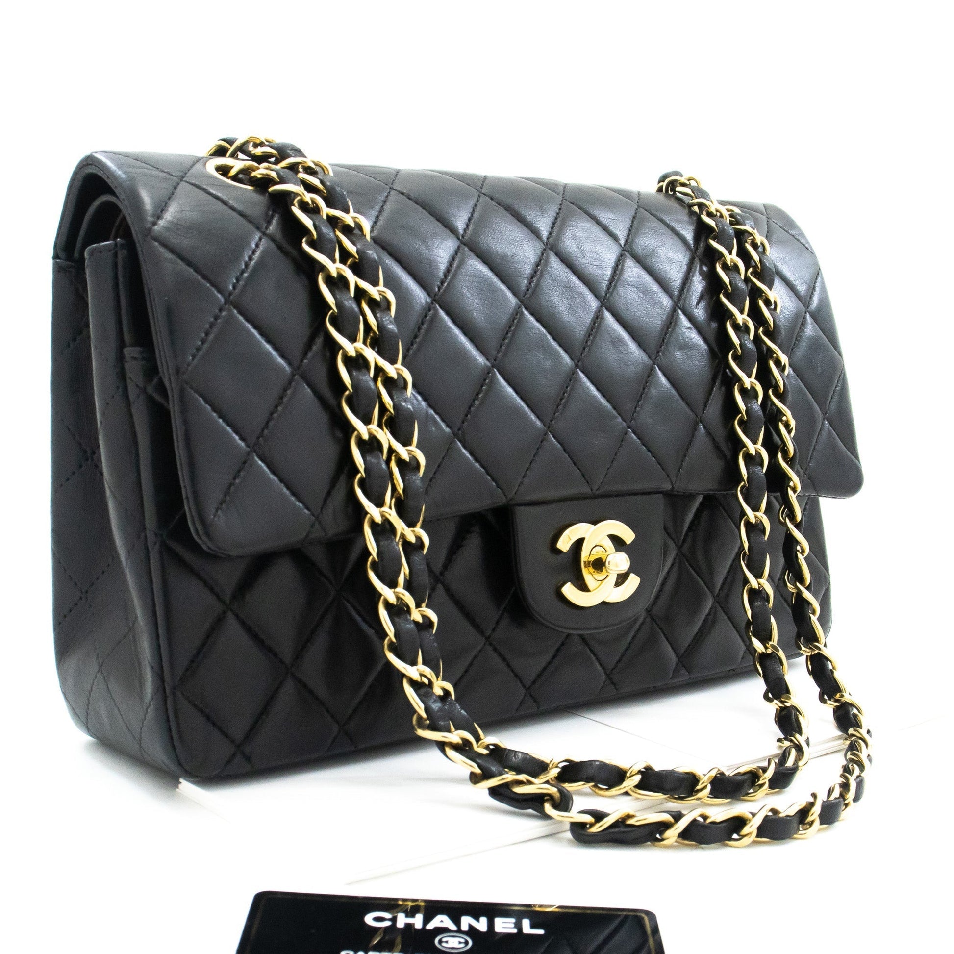 An authentic CHANEL Classic Double Flap Medium Chain Shoulder Bag Black Lamb k34 This item is Vintage / Classic. The year of manufacture would be 2002.