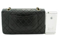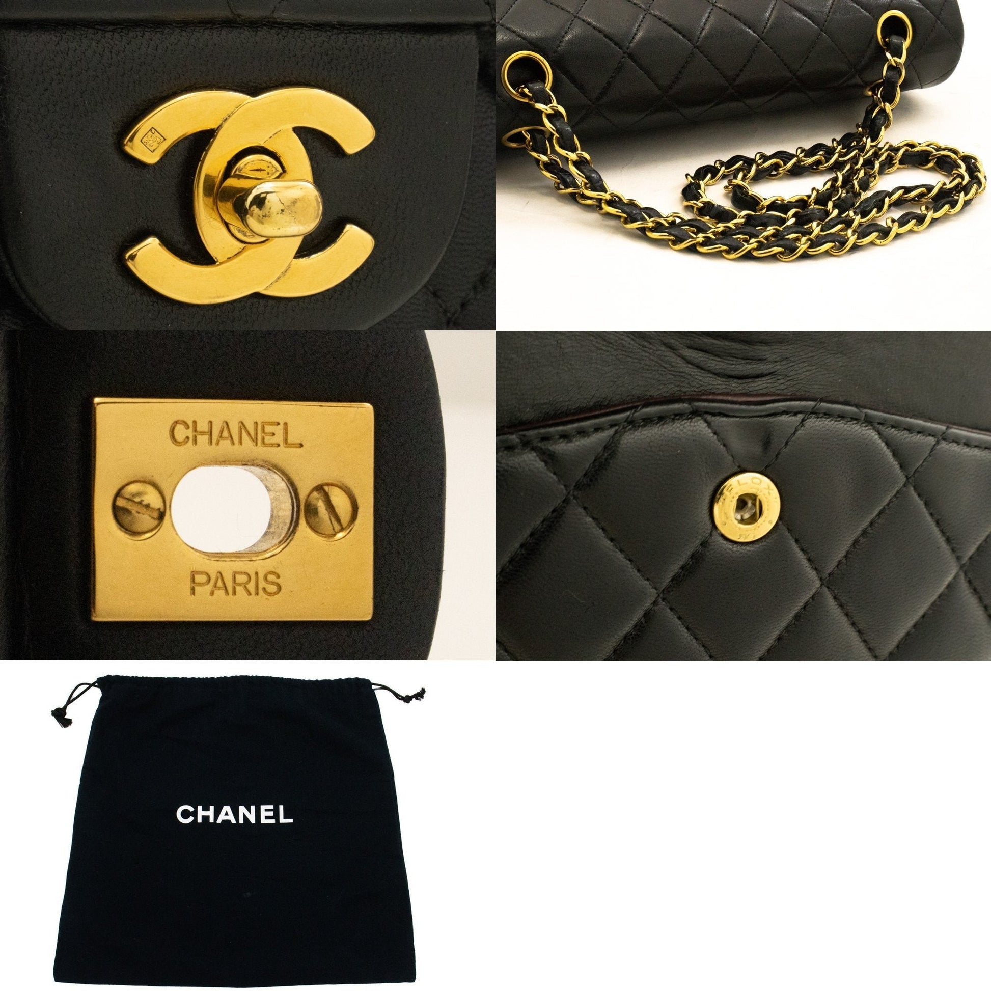 CHANEL Classic Double Flap Medium Chain Shoulder Bag Black Lamb k61