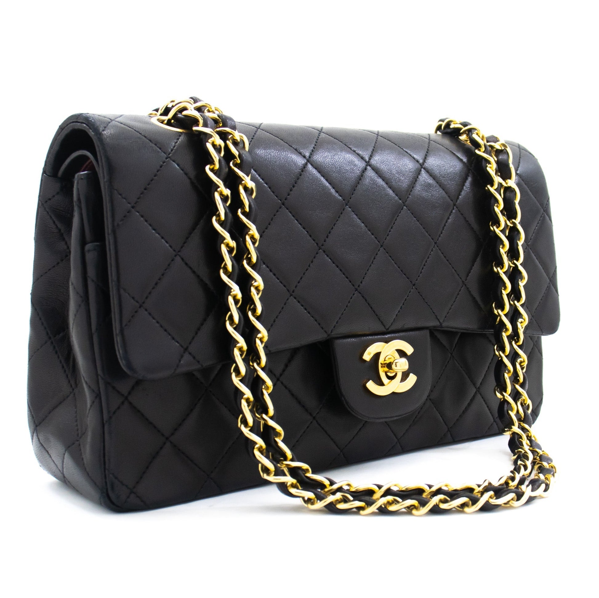 An authentic CHANEL Classic Double Flap Medium Chain Shoulder Bag Black Lamb k70 This item is Vintage / Classic. The year of manufacture would be 1989-1991.