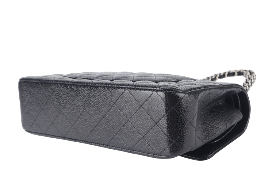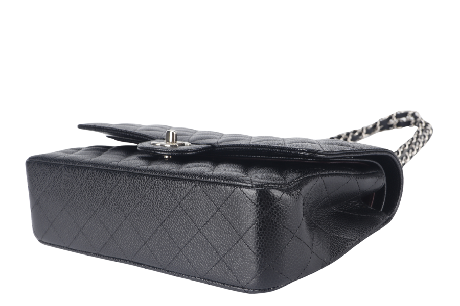 CHANEL CLASSIC FLAP (2618xxxx) MEDIUM BLACK CAVIAR SILVER HARDWARE NO WITH DUST COVER AND BOX