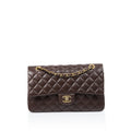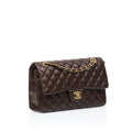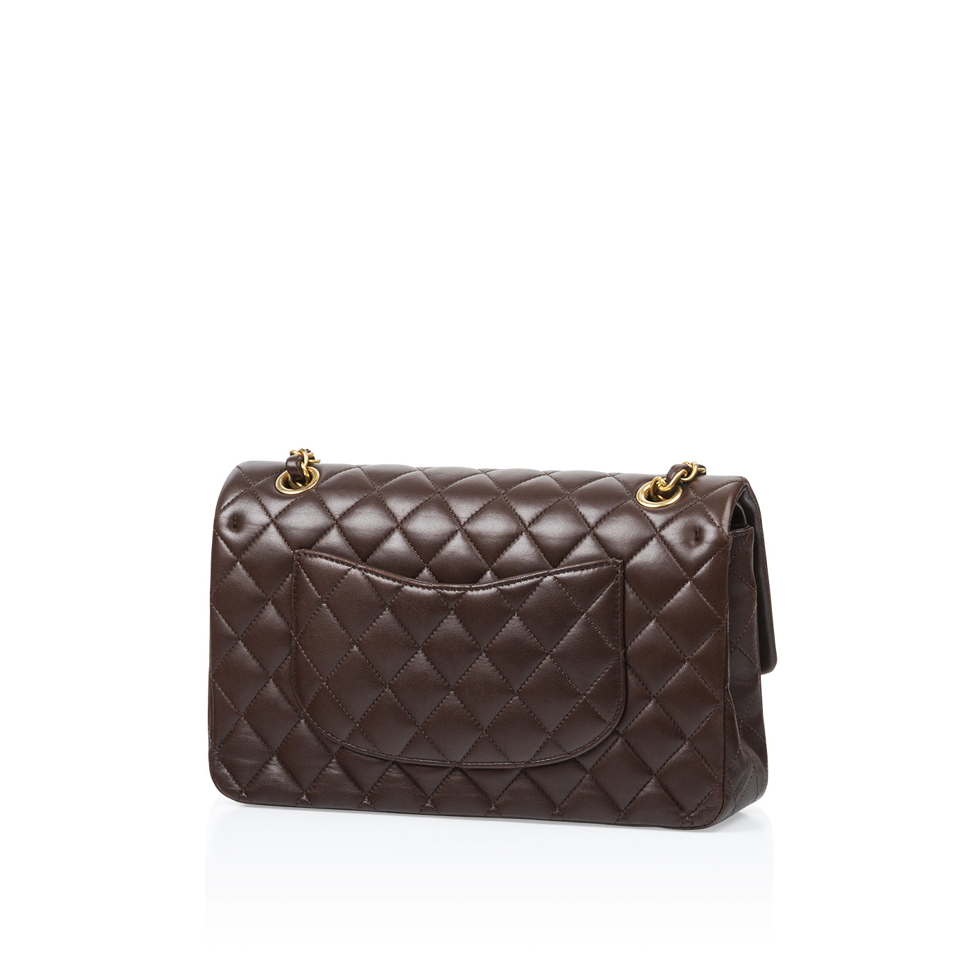 Chanel continues to present its signature line of Classic Flap bags. Under the creative direction of Karl Lagerfeld, the Classic Flap is perhaps the most acclaimed bag in all of fashion history. Timeless, elegant and sophisticated, it's no wonder the Classic Flap is, well, a classic. Featuring its infamous quilted lambskin leather and unique matte-gold tone hardware, the Classic Flap is an absolute must-have in any luxury handbag collection. Not only is this highly coveted, chocolate brown bag the perfect compliment to pretty much anything you may own in your wardrobe, but it's also an investment piece that will never lose its value. Embodying elegance and traditional femininity to a T, a Chanel bag is a purchase you won't ever regret.