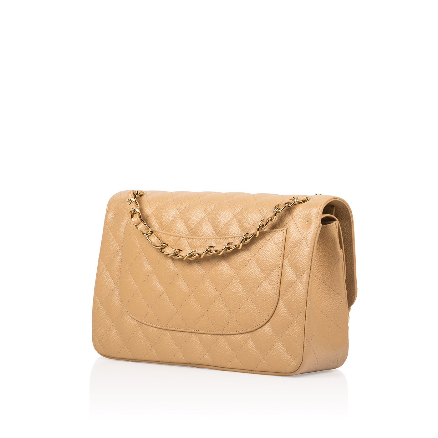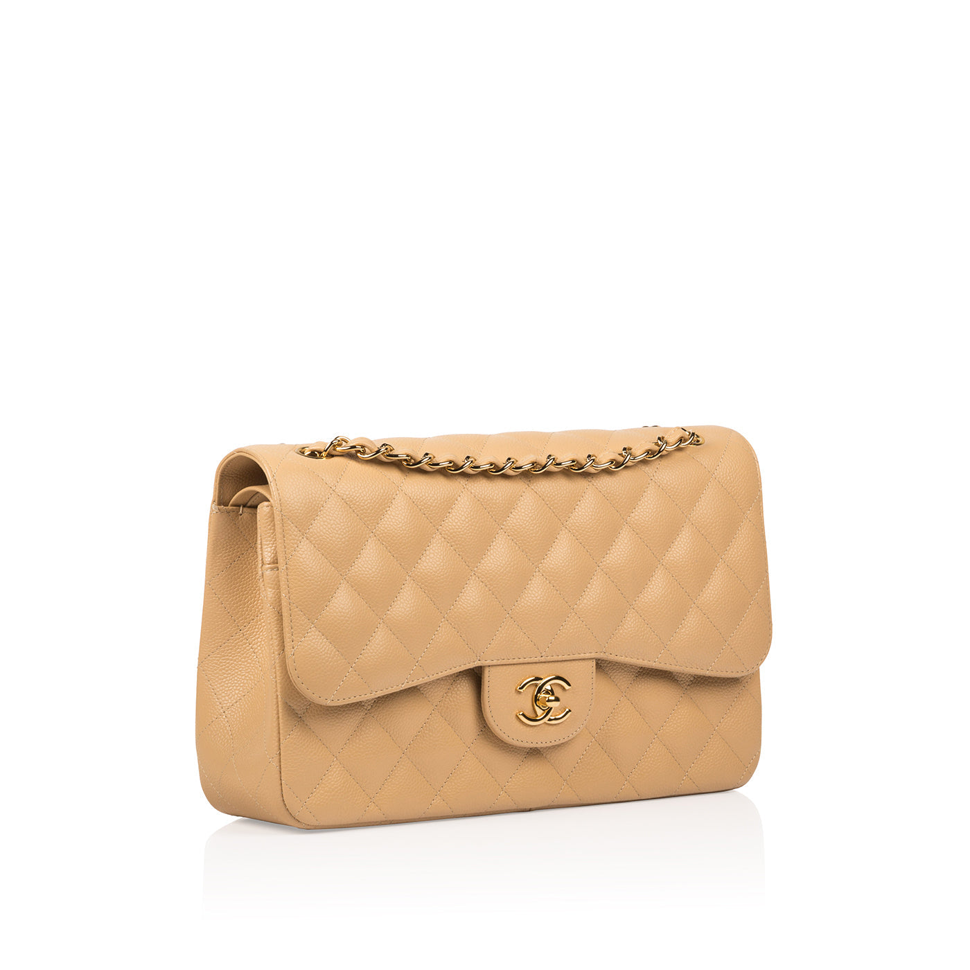 Under the creative direction of Karl Lagerfeld, Chanel continues with its line of classic quilted bags. This enviable Double Flap bag is crafted in caviar leather, and detailed with fine stitching and silver hardware. The chain is interwoven with leather and can be worn on either a single shoulder strap or doubled up. The neutral colour means this bag fits seamlessly into any wardrobe, and it can stay in there forever! The Classic Flap from Chanel is a true investment piece.