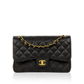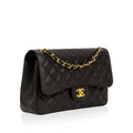 Chanel continues to present its signature line of Classic Flap bags. Under the creative direction of Karl Lagerfeld, the Classic Flap is perhaps the most acclaimed bag in all of fashion history. Timeless, elegant and sophisticated, it's no wonder the Classic Flap is, well, a classic. Featuring its infamous quilted caviar leather and interwoven chain / leather strap, the Jumbo is an absolute must-have in any luxury handbag collection. Not only is this highly coveted, this stunning black bag the perfect compliment to pretty much anything you may own in your wardrobe, but it's also an investment piece that will never lose its value. Embodying elegance and traditional femininity to a T, a Chanel bag is a purchase you won't ever regret.