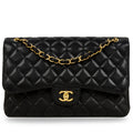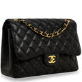 Chanel continues to present its signature line of Classic Flap bags. Under the creative direction of Karl Lagerfeld, the Classic Flap is perhaps the most acclaimed bag in all of fashion history. Timeless, elegant and sophisticated, it's no wonder the Classic Flap is, well, a classic. Featuring its infamous quilted caviar leather and interwoven chain / leather strap, the Jumbo is an absolute must-have in any luxury handbag collection. Not only is this highly coveted, this stunning black bag the perfect compliment to pretty much anything you may own in your wardrobe, but it's also an investment piece that will never lose its value. Embodying elegance and traditional femininity to a T, a Chanel bag is a purchase you won't ever regret.
