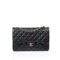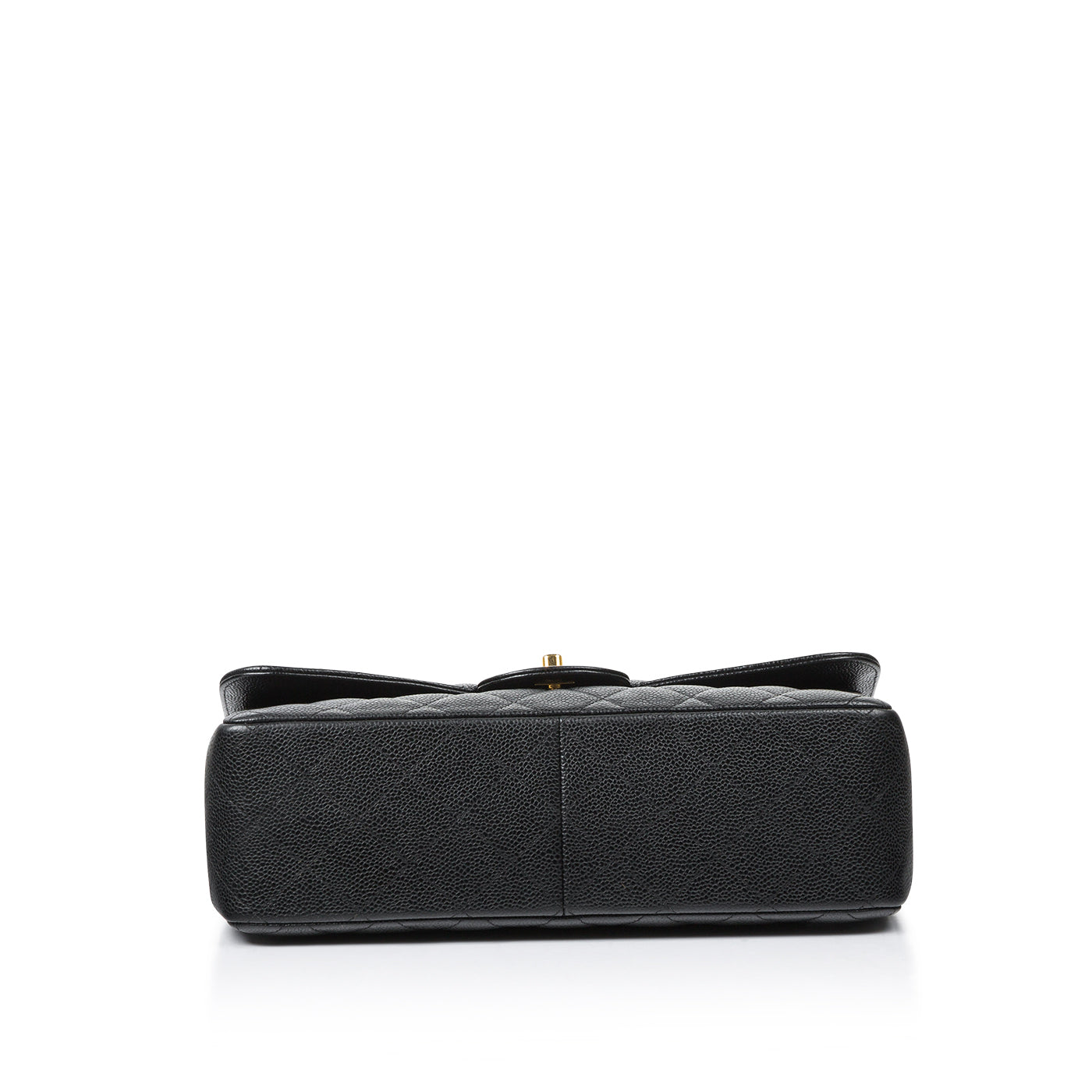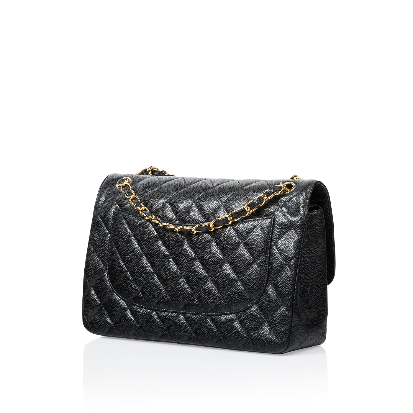 Chanel continues to present its signature line of Classic Flap bags. Under the creative direction of Karl Lagerfeld, the Classic Flap is perhaps the most acclaimed bag in all of fashion history. Timeless, elegant and sophisticated, it's no wonder the Classic Flap is, well, a classic. Featuring its infamous quilted caviar leather and interwoven chain / leather strap, the Jumbo is an absolute must-have in any luxury handbag collection. Not only is this highly coveted, this stunning black bag the perfect compliment to pretty much anything you may own in your wardrobe, but it's also an investment piece that will never lose its value. Embodying elegance and traditional femininity to a T, a Chanel bag is a purchase you won't ever regret.