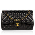 Under the creative direction of Karl Lagerfeld, Chanel continues with its line of classic quilted bags. The enviable Double Flap bag is crafted in supple lambskin leather, and detailed with fine stitching and gold hardware. The chain is interwoven with leather and can be worn on either a single shoulder strap or doubled up. The neutral color means this bag fits seamlessly into any wardrobe, and it can stay in there forever! The Classic Flap from Chanel is a true investment piece - especially in it's most coveted colour combination of Black & Gold!