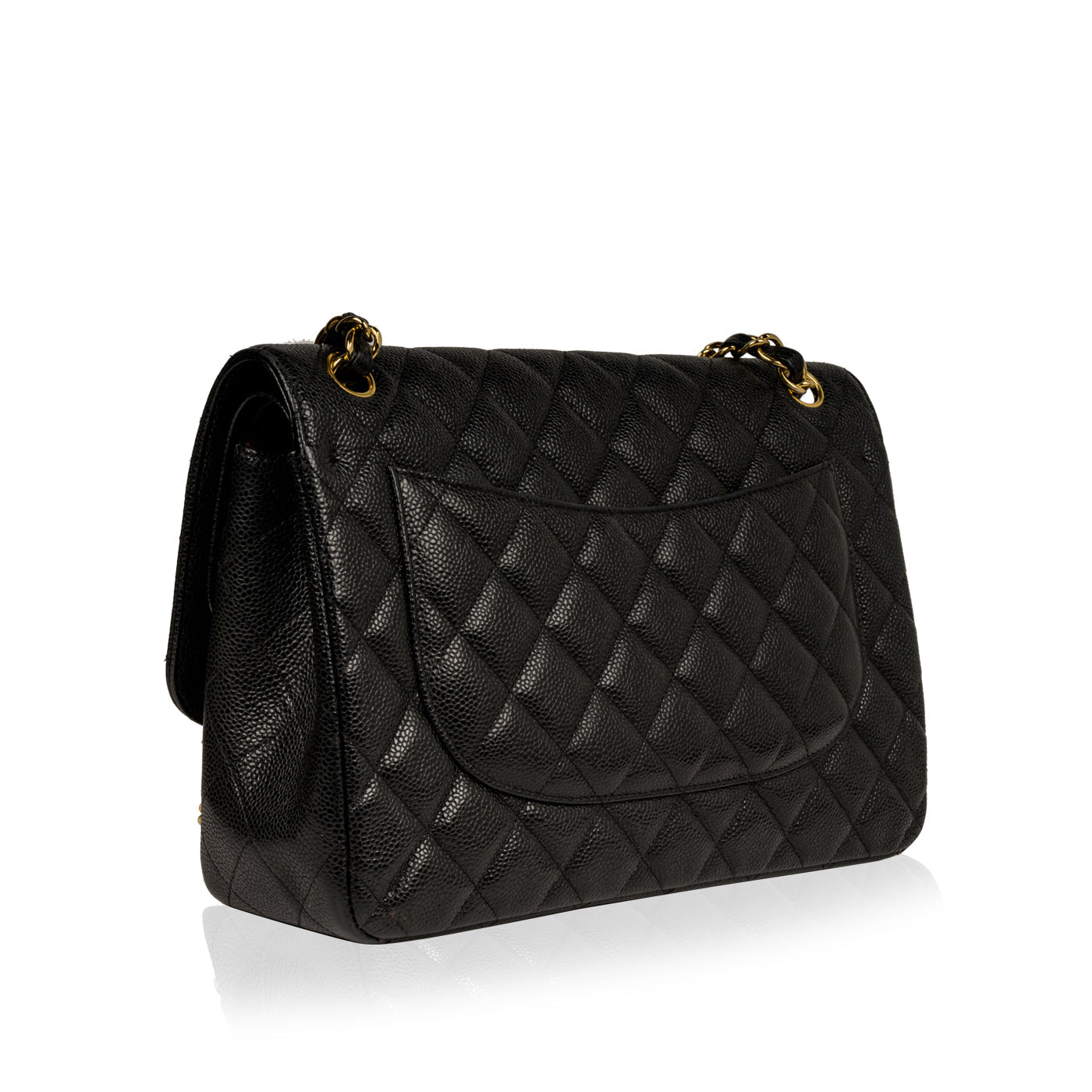 Under the creative direction of Karl Lagerfeld, Chanel continues with its line of classic quilted bags. The enviable Double Flap bag is crafted in Chanel's signature 'Caviar' leather, and detailed with fine stitching and gold hardware. The chain is interwoven with leather and can be worn on either a single shoulder strap or doubled up. The neutral color means this bag fits seamlessly into any wardrobe, and it can stay in there forever! The Classic Flap from Chanel is a true investment piece - especially in it's most coveted colour combination of Black & Gold!
