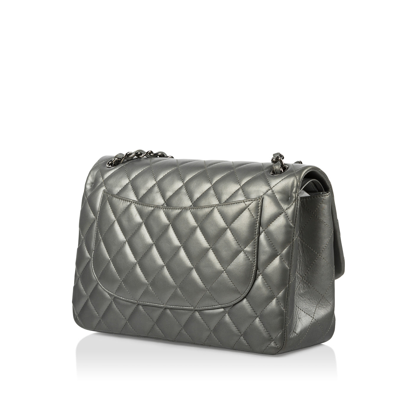 Under Karl Lagerfeld’s creative direction, Chanel continues to release its line of Classic Flap bags. Characterised by its magnificent silver quilted exterior, Chanel presents the Chanel Silver Jumbo. Much like the rest of Chanel’s classic flap bags, the Silver Jumbo is crafted from their magnificent lambskin leather and decorated with their silver toned hardware, creating a dazzling air of opulence. The bag bears the fashion house’s iconic CC turn lock closure and the highly-acclaimed interwoven chain. The bag’s interior features a ravishing silver leather lining, much like its exterior, alongside a oversized CC embossing, not to mention the iconic double flap. With its unique colour and magnificent silhouette, Chanel’s Silver Jumbo is most definitely a very rare piece.