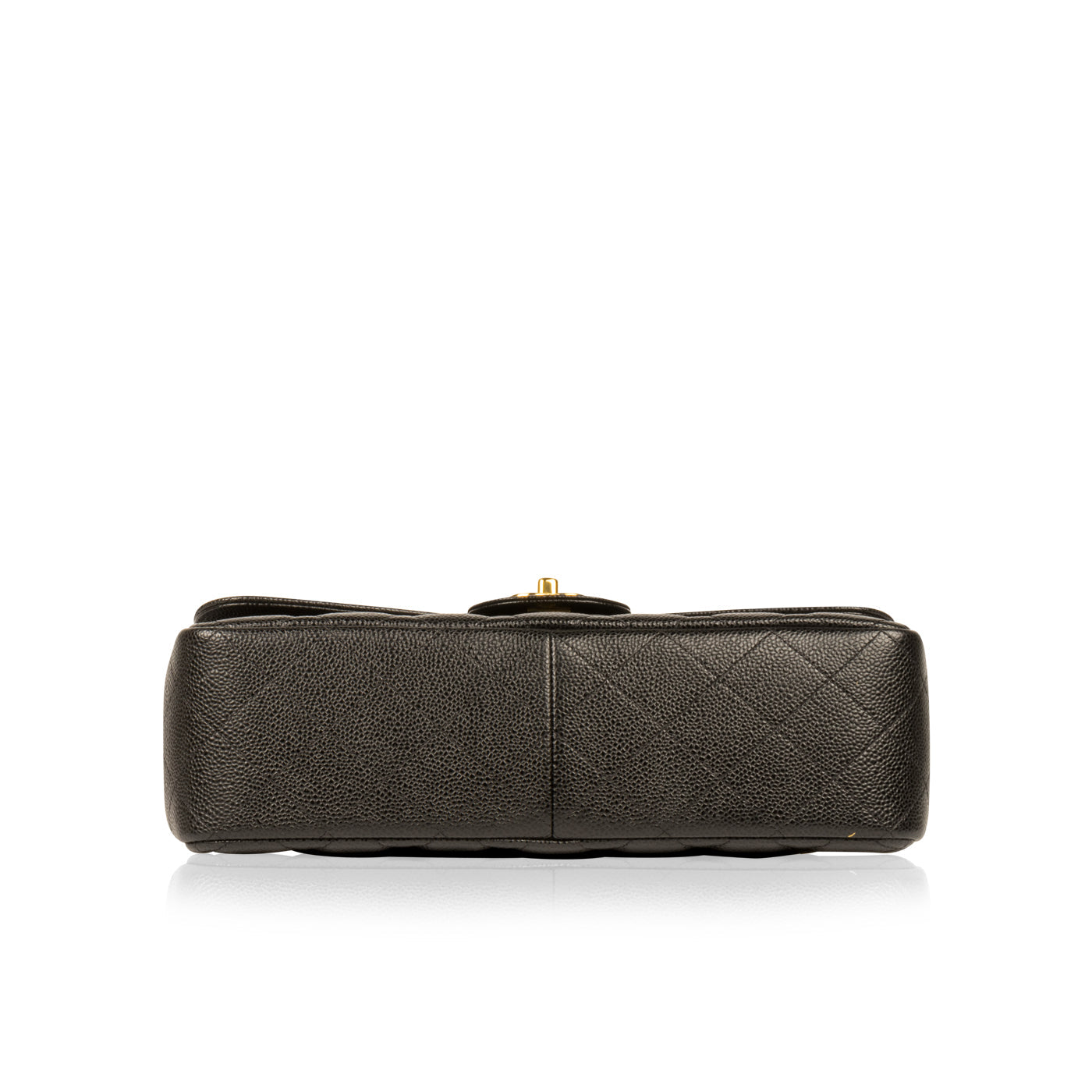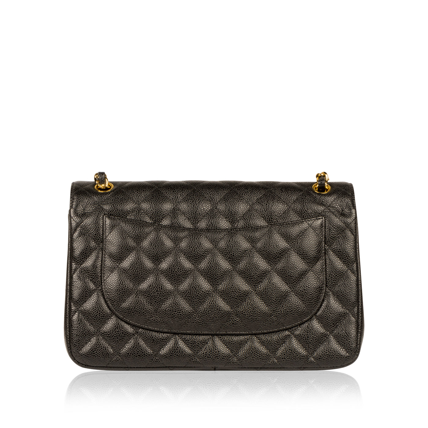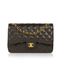 Chanel continues to present its signature line of Classic Flap bags. Under the creative direction of Karl Lagerfeld, the Classic Flap is perhaps the most acclaimed bag in all of fashion history. Timeless, elegant and sophisticated, it's no wonder the Classic Flap is, well, a classic. Featuring its infamous quilted caviar leather and interwoven chain / leather strap, the Jumbo is an absolute must-have in any luxury handbag collection. Not only is this highly coveted, stunning black bag the perfect compliment to pretty much anything you have in your wardrobe, but it's also an investment piece that will never lose its value. Embodying elegance and traditional femininity to a T, a Chanel bag is a purchase you won't ever regret.