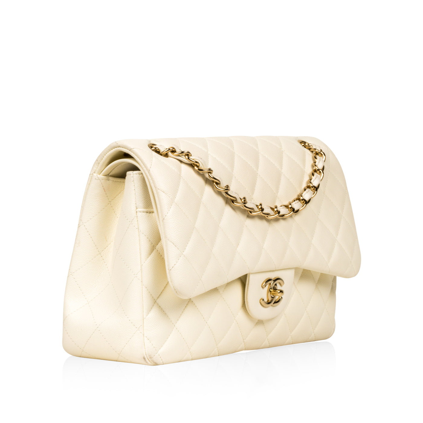 - Quilted caviar leather in Off-white hue