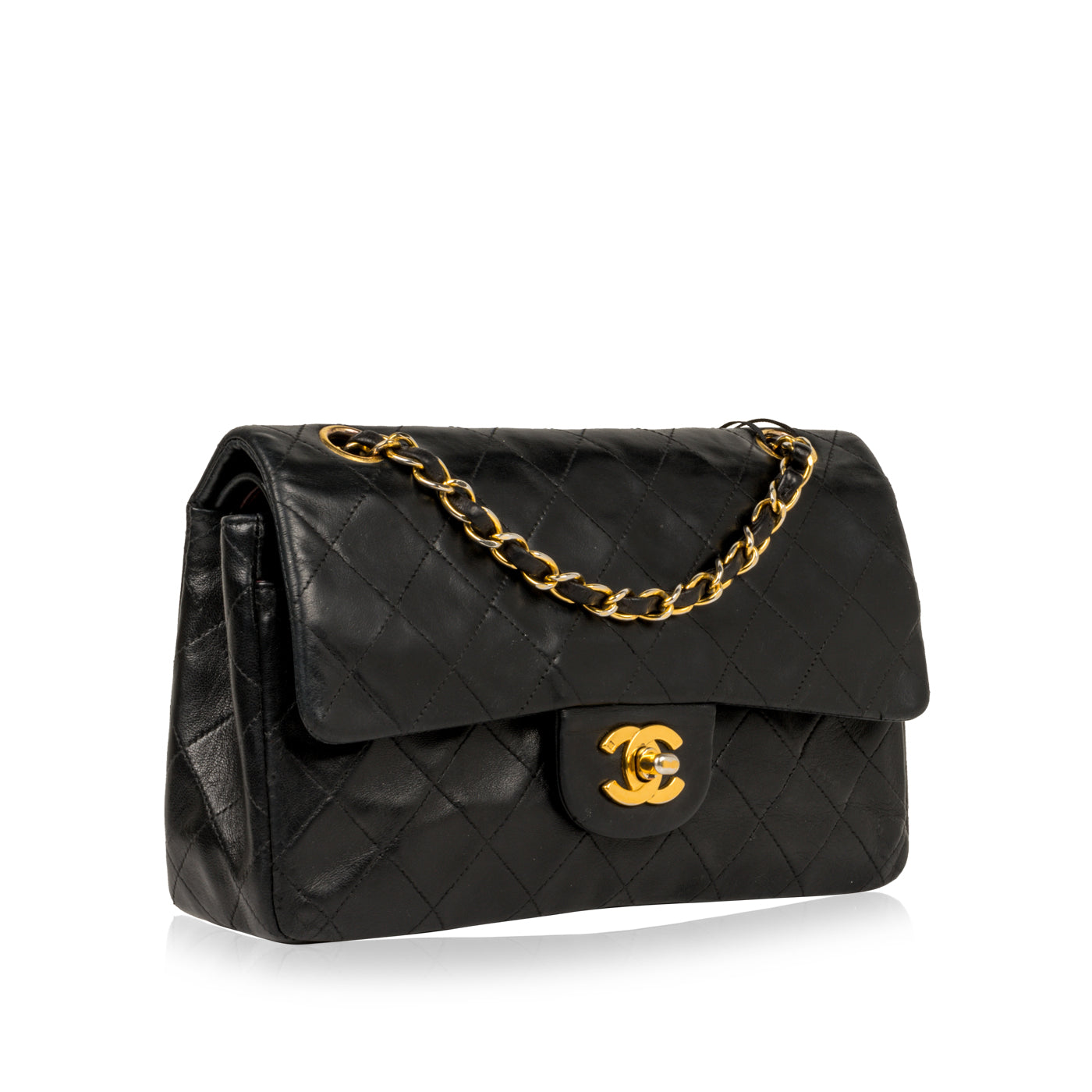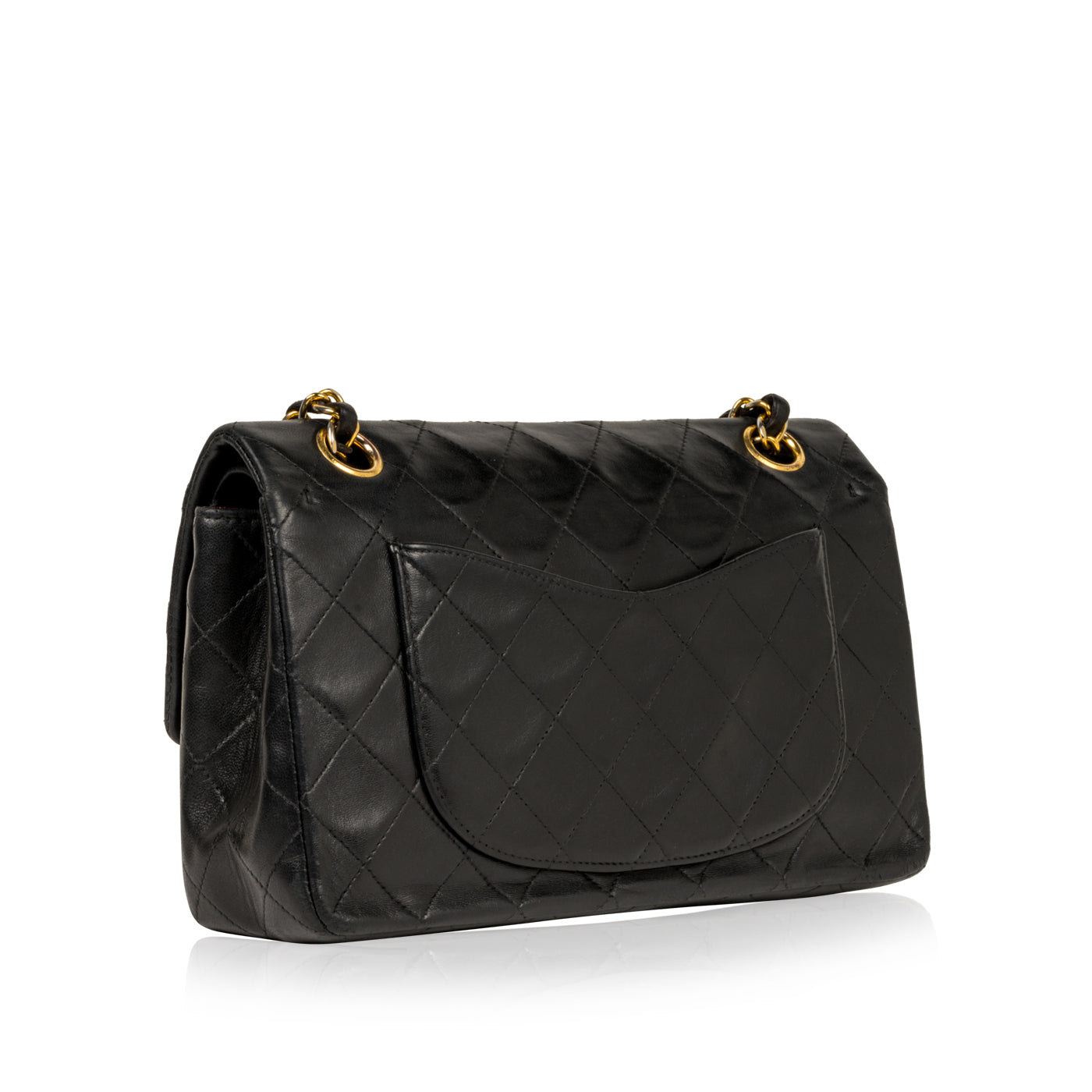 Crafted from Chanel's signature black lambskin leather, this vintage gem is an absolute must-have for any woman with a love for luxury. Featuring the brand's infamous interwoven chain / leather shoulder strap, double flap, and gold tone hardware, this classic bag is the perfect balance between fashion and function. Practical as well as stylish, this bag is a timeless piece that will remain in your wardrobe forever. The ideal accessory to take you from day to night, there's not much this bag won't go with. The perfect compliment to absolutely anything in your wardrobe, this Chanel vintage flap bag is one you'll never fall out of love with. A well-worthy addition to any luxury handbag collection, this gorgeous investment piece is a necessity for anyone with heart eyes for Chanel and even bigger heart eyes for all things vintage. Sleek, stylish and sophisticated, this bag is one you just need in your life.