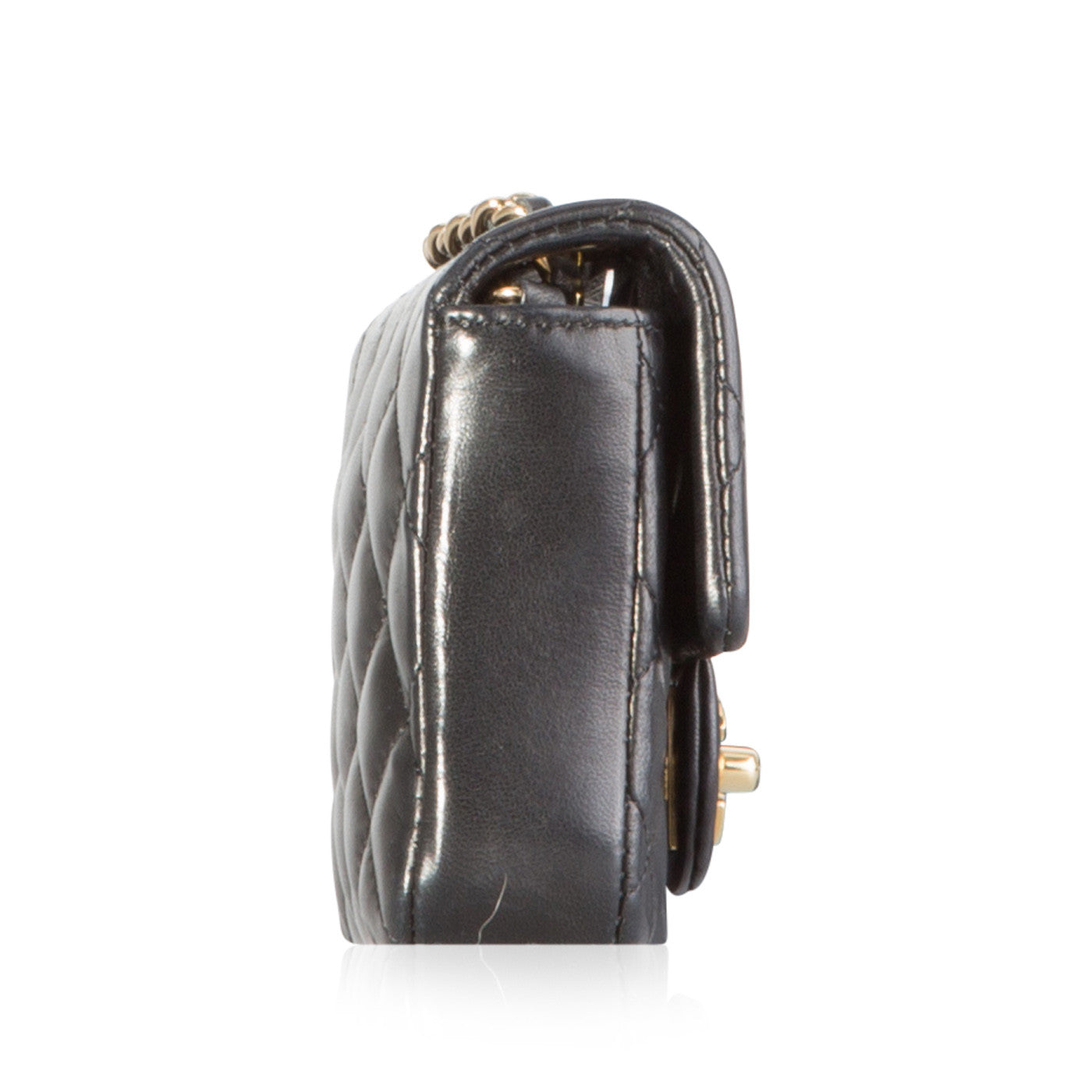 The smallest version of the iconic Classic Flap from Chanel. The extra mini features the classic quilted leather, interwoven chain and leather shoulder strap. This versatile classic from the Parisian Fashion house can be worn as a cross body, shoulder bag or even as a clutch bag.