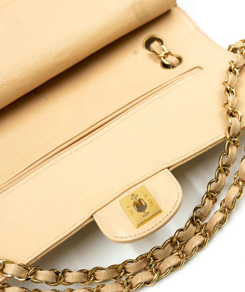Shop this Chanel Classic Flap Medium Beige Caviar GHW at Luxury Promise.