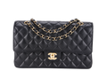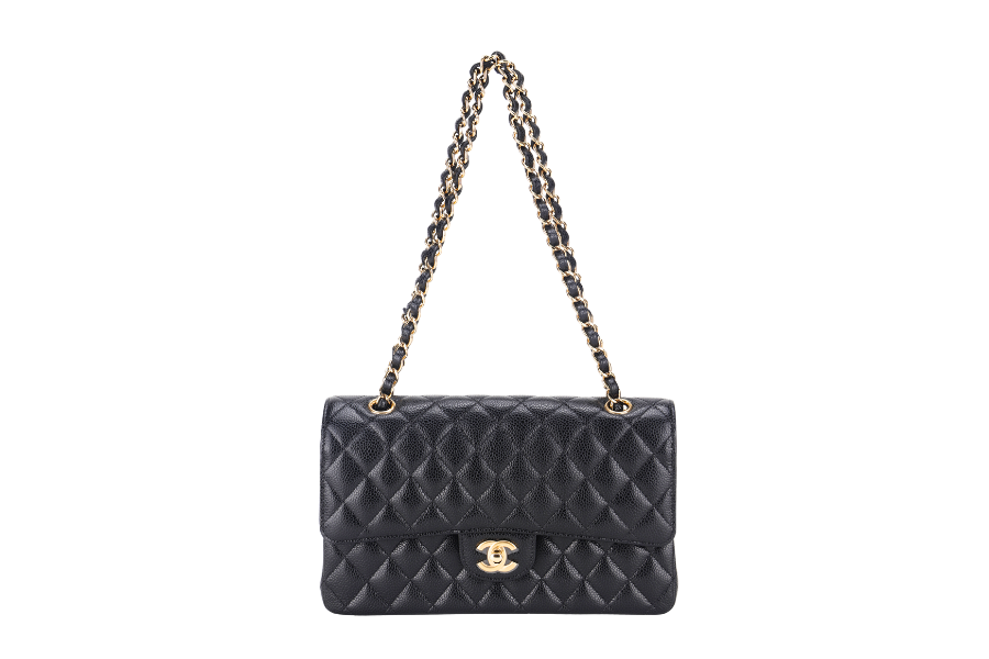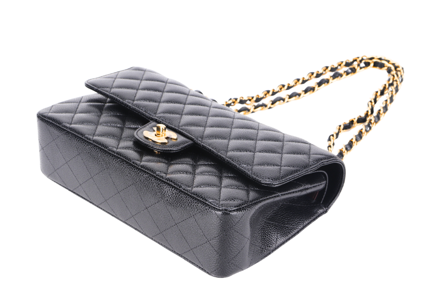 CHANEL CLASSIC FLAP (A047xxxx) MEDIUM BLACK CAVIAR GOLD HARDWARE, WITH DUST COVER & BOX