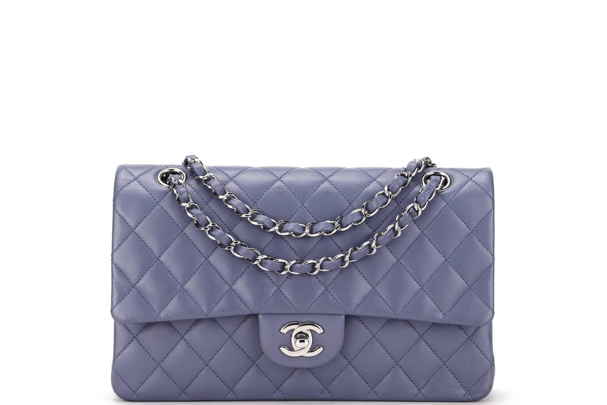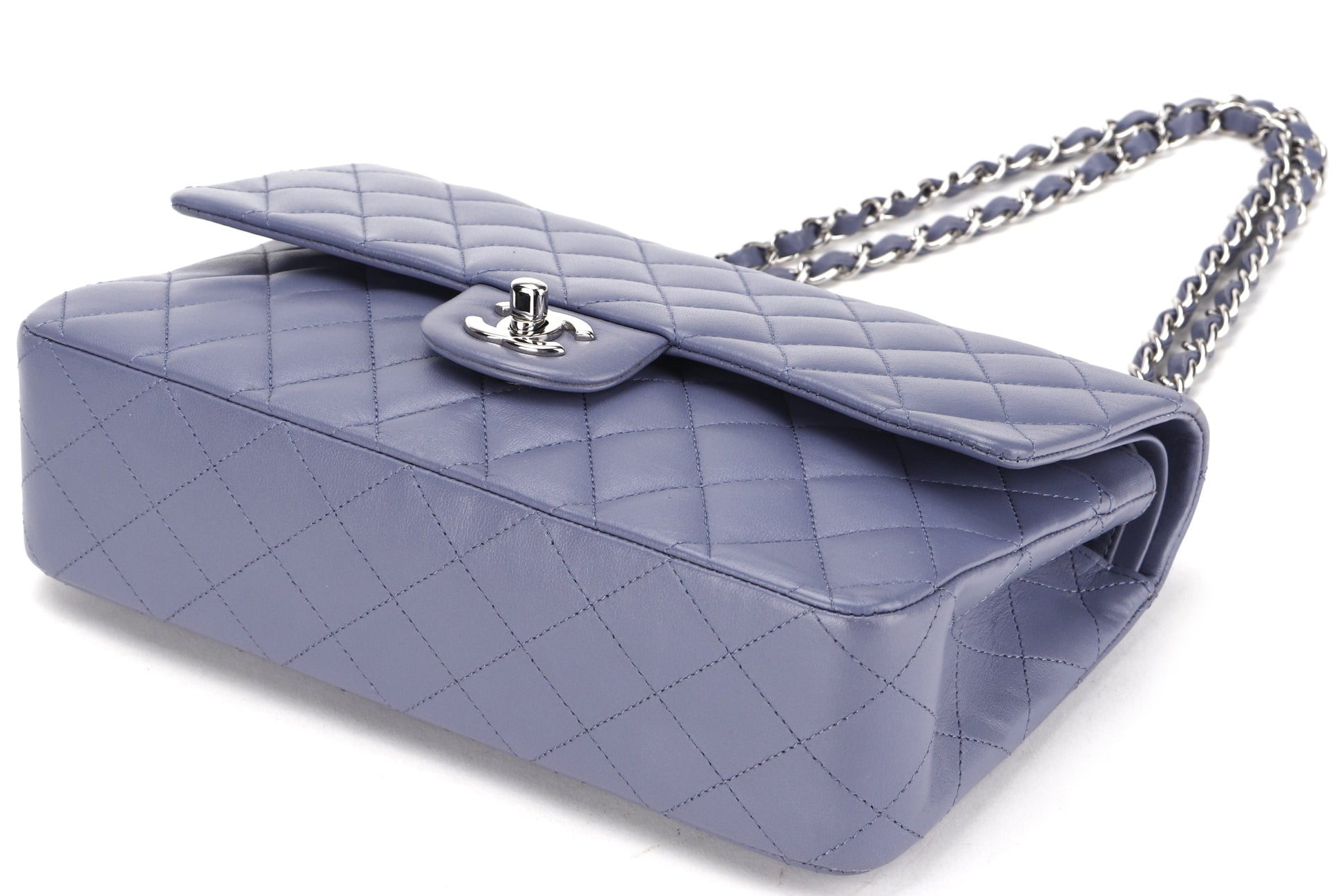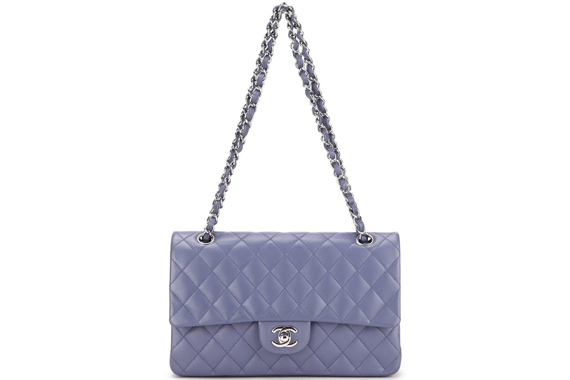 CHANEL CLASSIC FLAP (1583xxxx) MEDIUM LILAC LAMBSKIN SILVER HARDWARE, WITH , DUST COVER & BOX