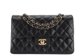 CHANEL CLASSIC FLAP SMALL BLACK LAMBSKIN GOLD HARDWARE WITH (1547xxxx) WITH DUST COVER AND BOX