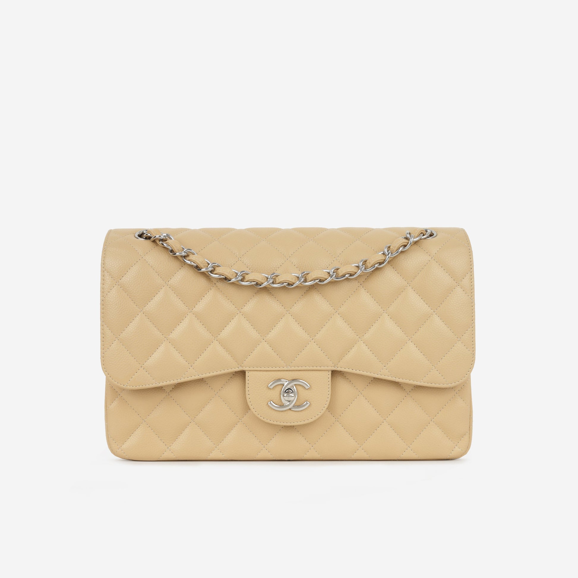 Chanel Classic Jumbo Double Flap Beige Caviar Silver Hardware
