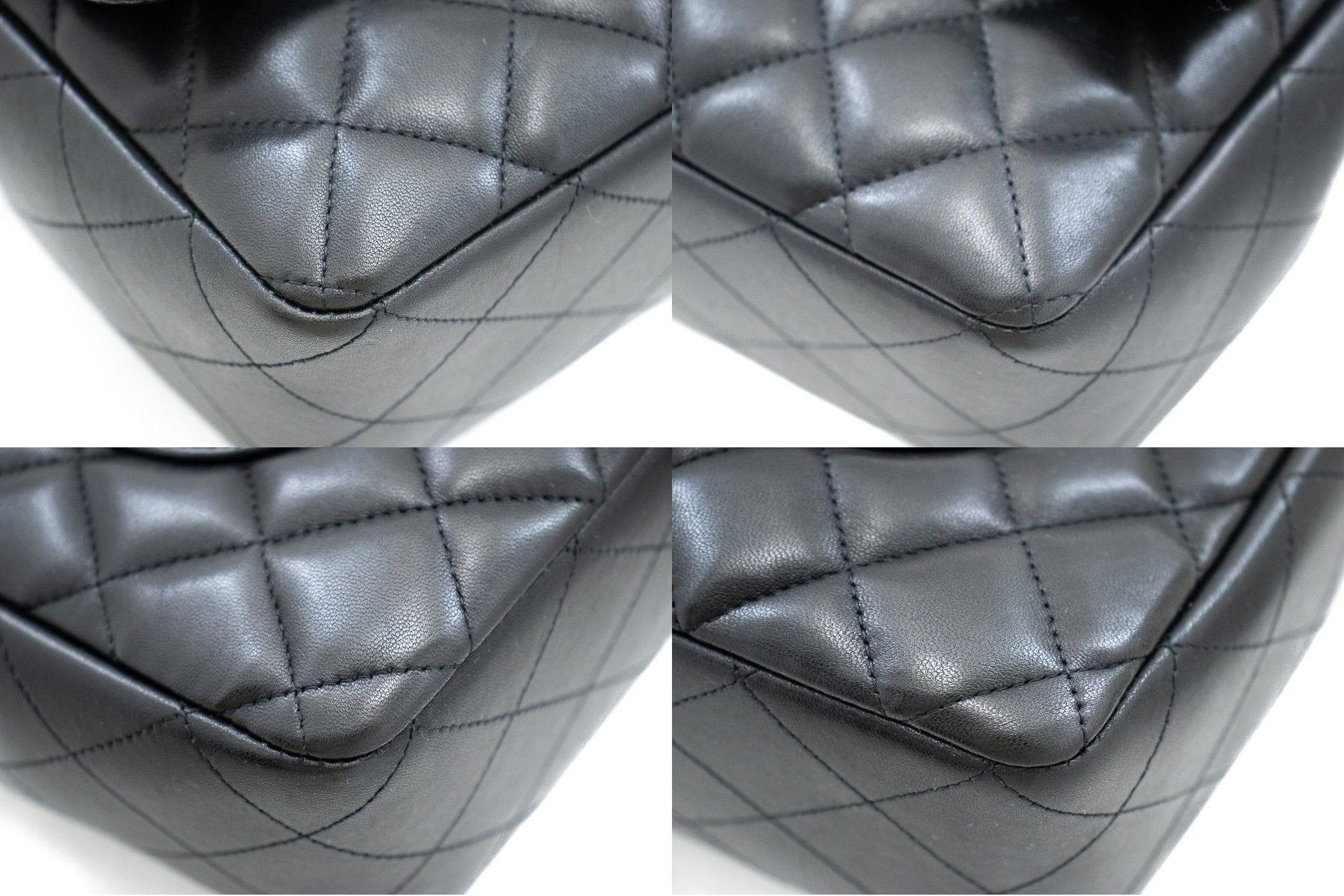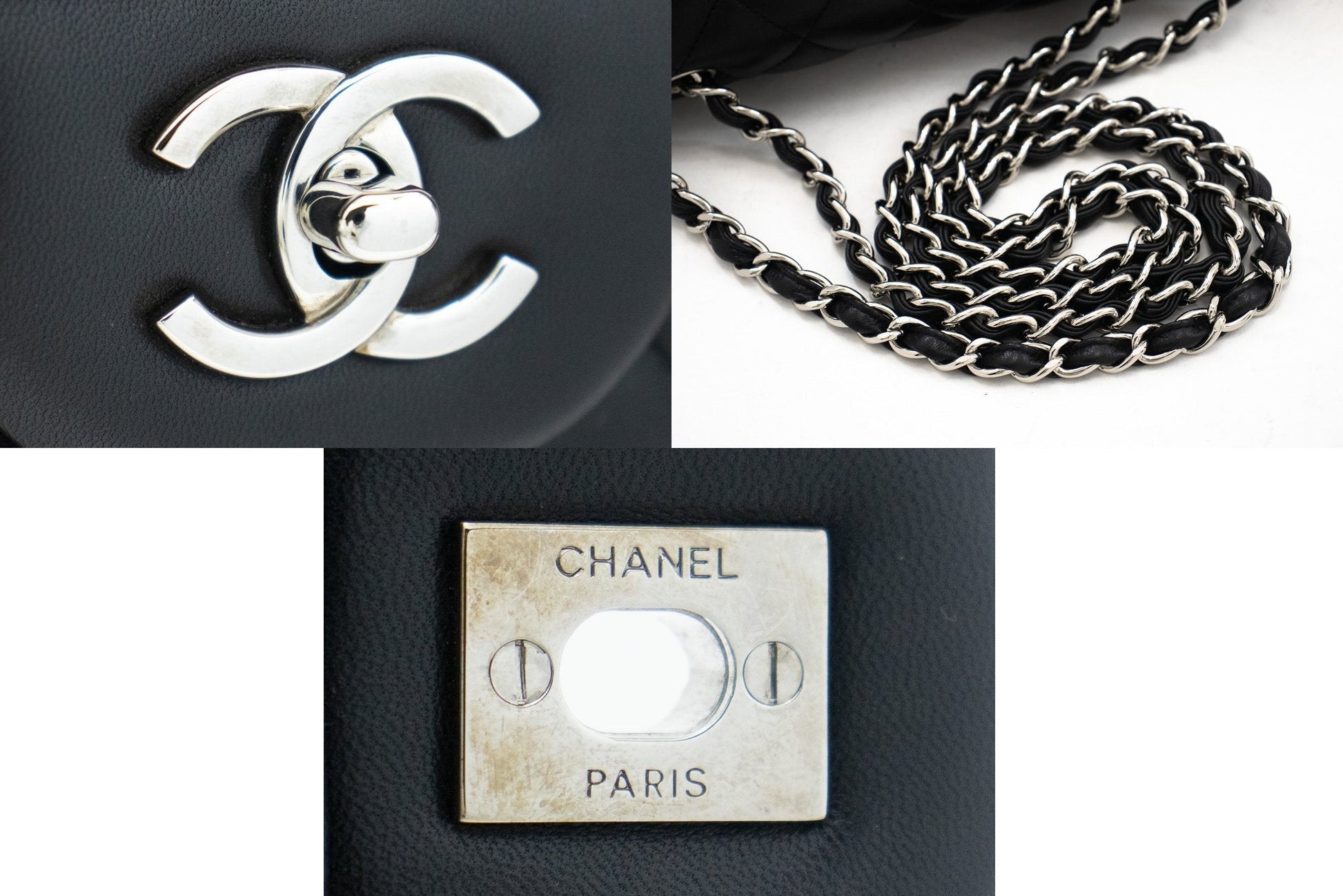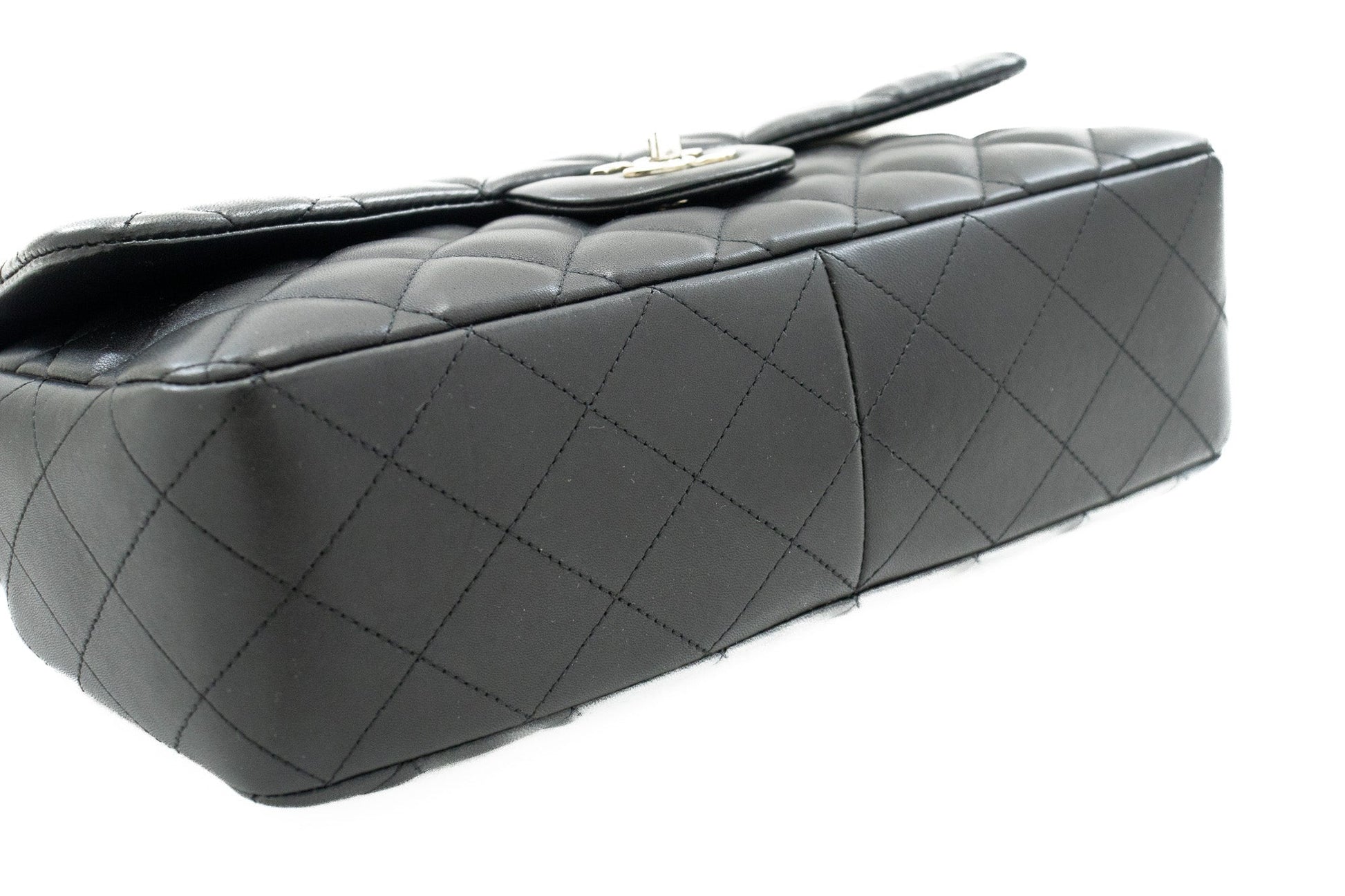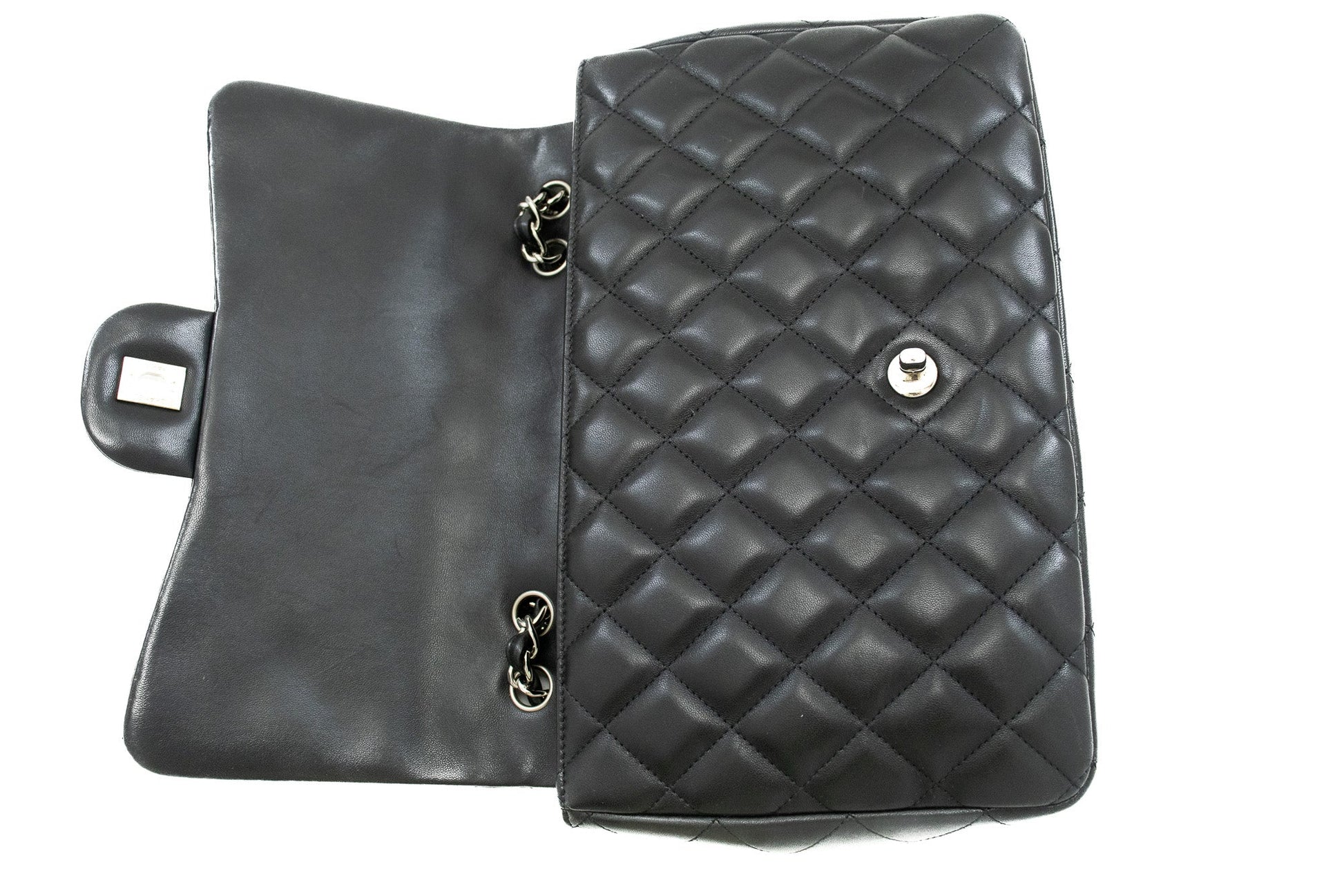 CHANEL Classic Large 11" Chain Shoulder Bag Flap Black Lambskin j42