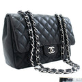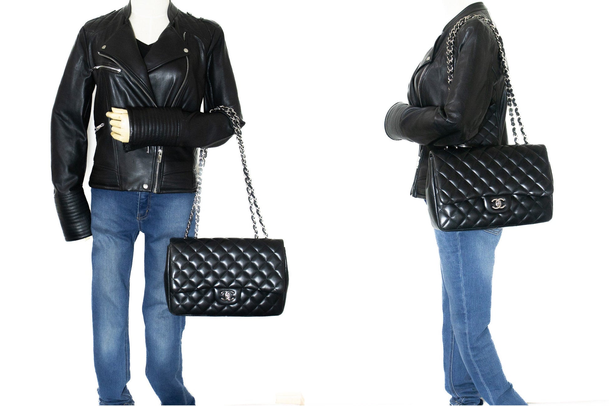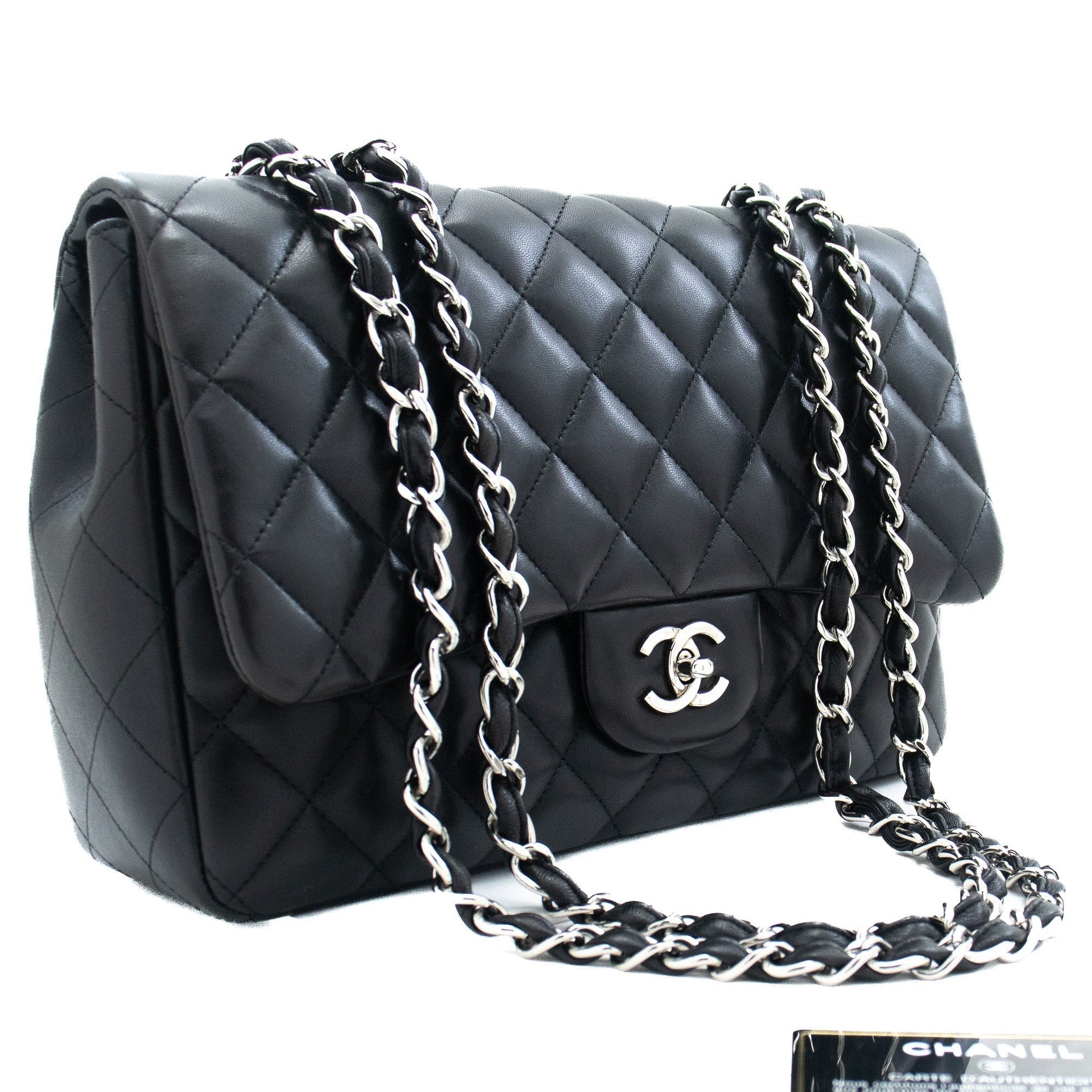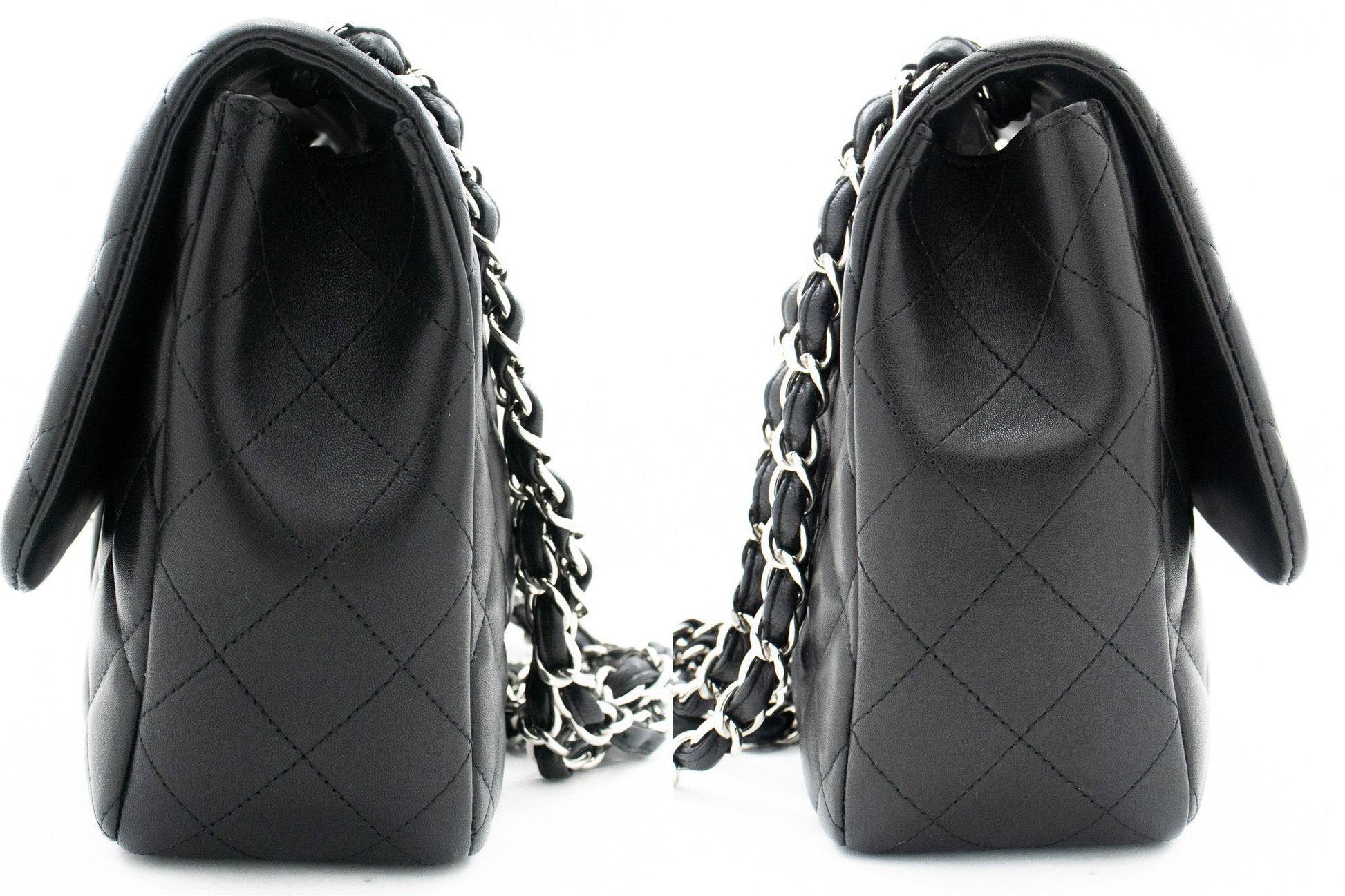 CHANEL Classic Large 11" Chain Shoulder Bag Flap Black Lambskin j42