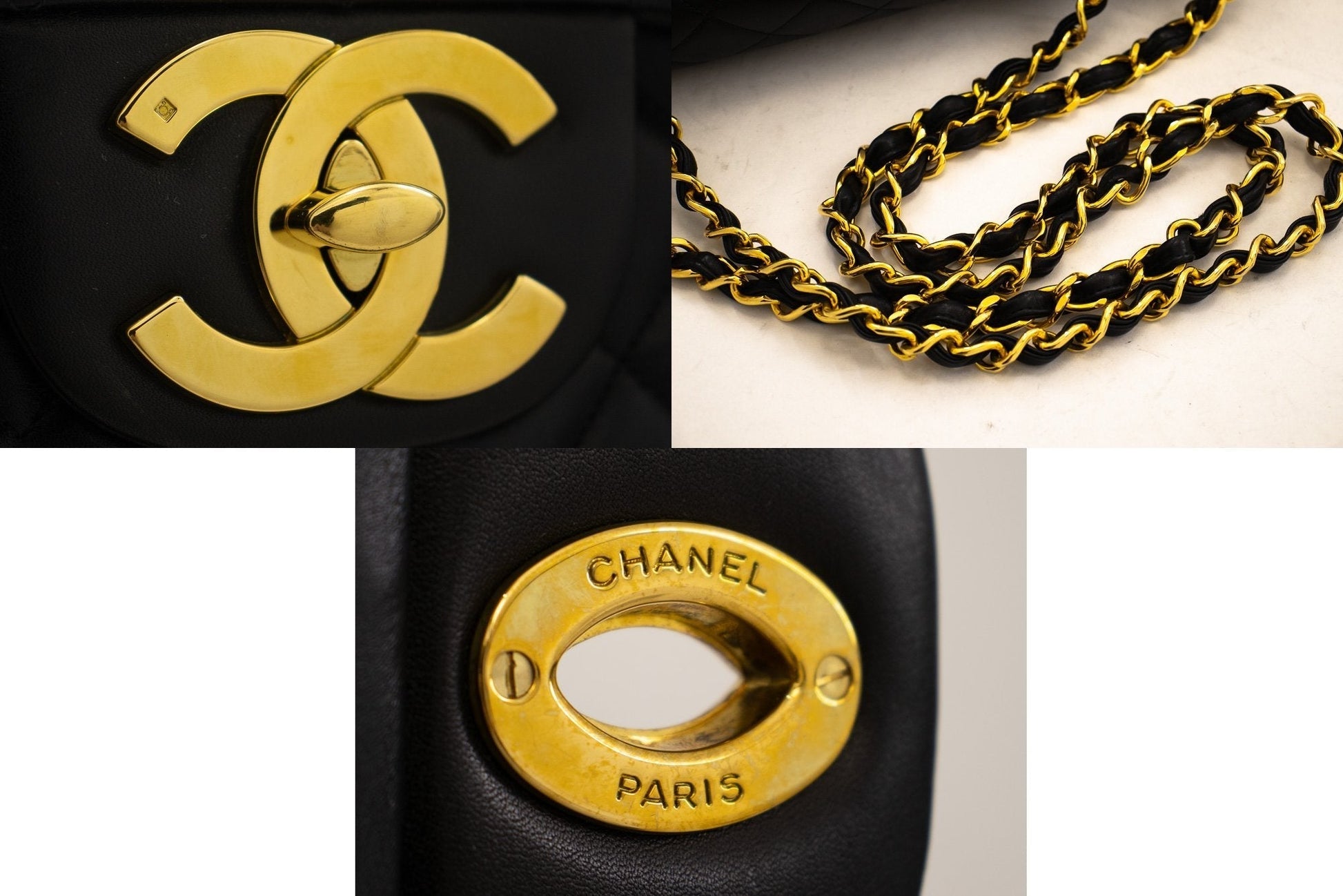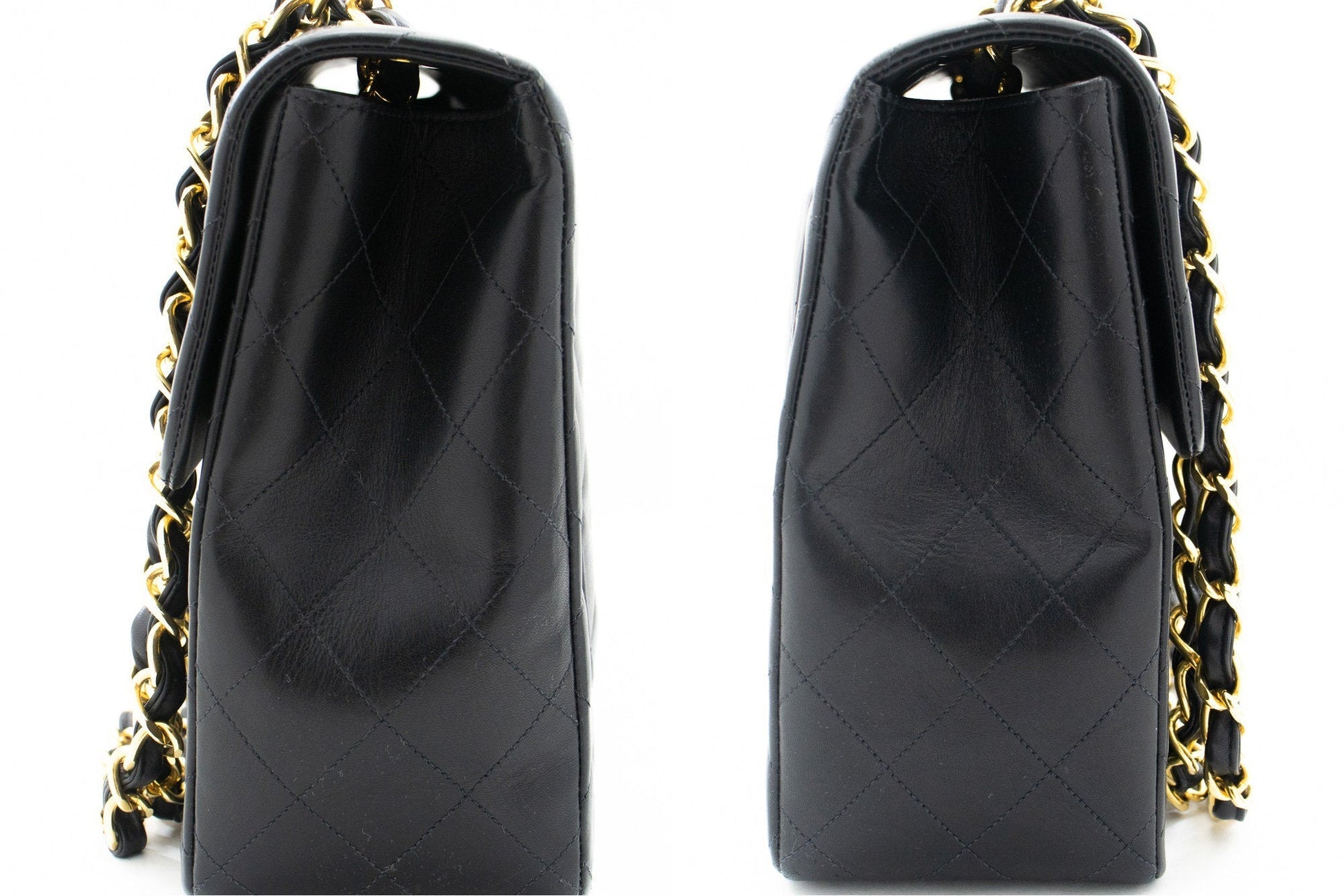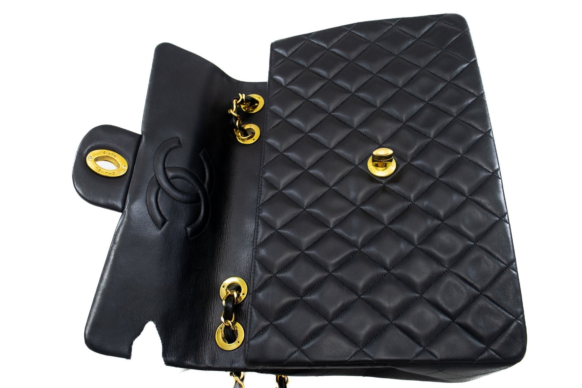 An authentic CHANEL Classic Large 13" Flap Chain Shoulder Bag Black made of black Lambskin j56 This item is Vintage / Classic. The year of manufacture would be 1994-1996.
