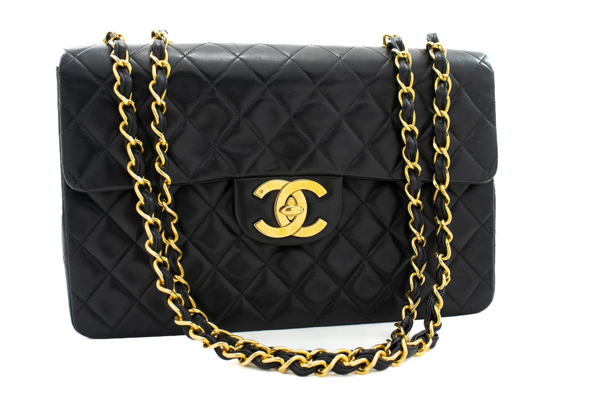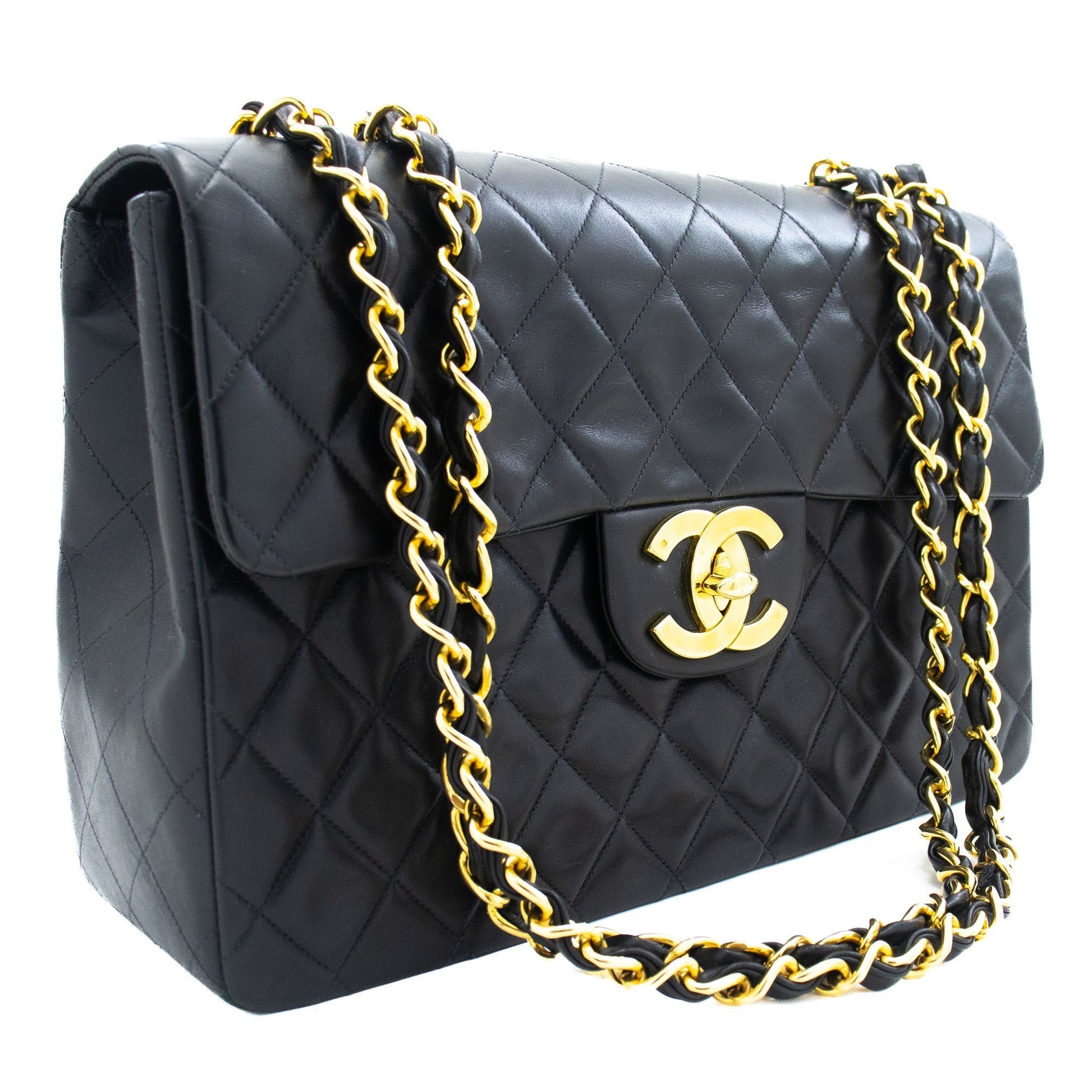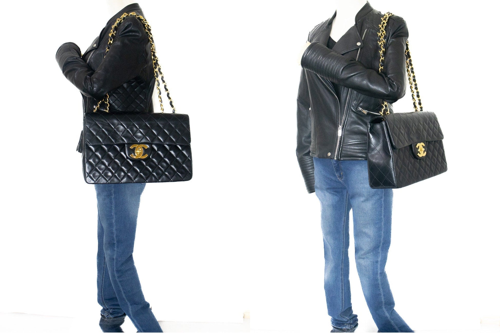 An authentic CHANEL Classic Large 13" Flap Chain Shoulder Bag Black made of black Lambskin j56 This item is Vintage / Classic. The year of manufacture would be 1994-1996.