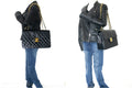 CHANEL Classic Large 13" Flap Chain Shoulder Bag Black Lambskin j56