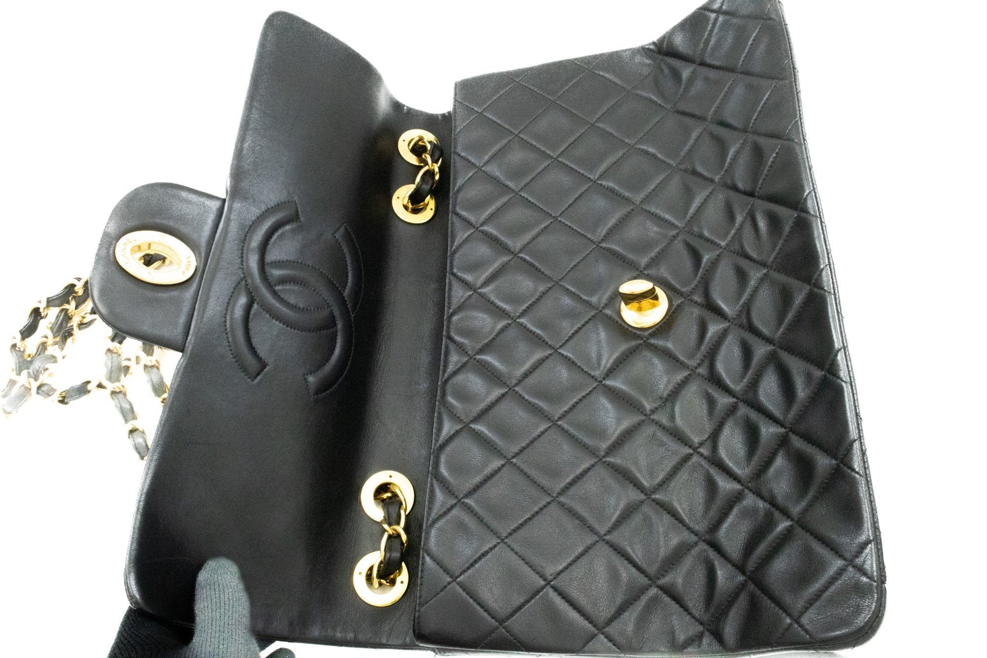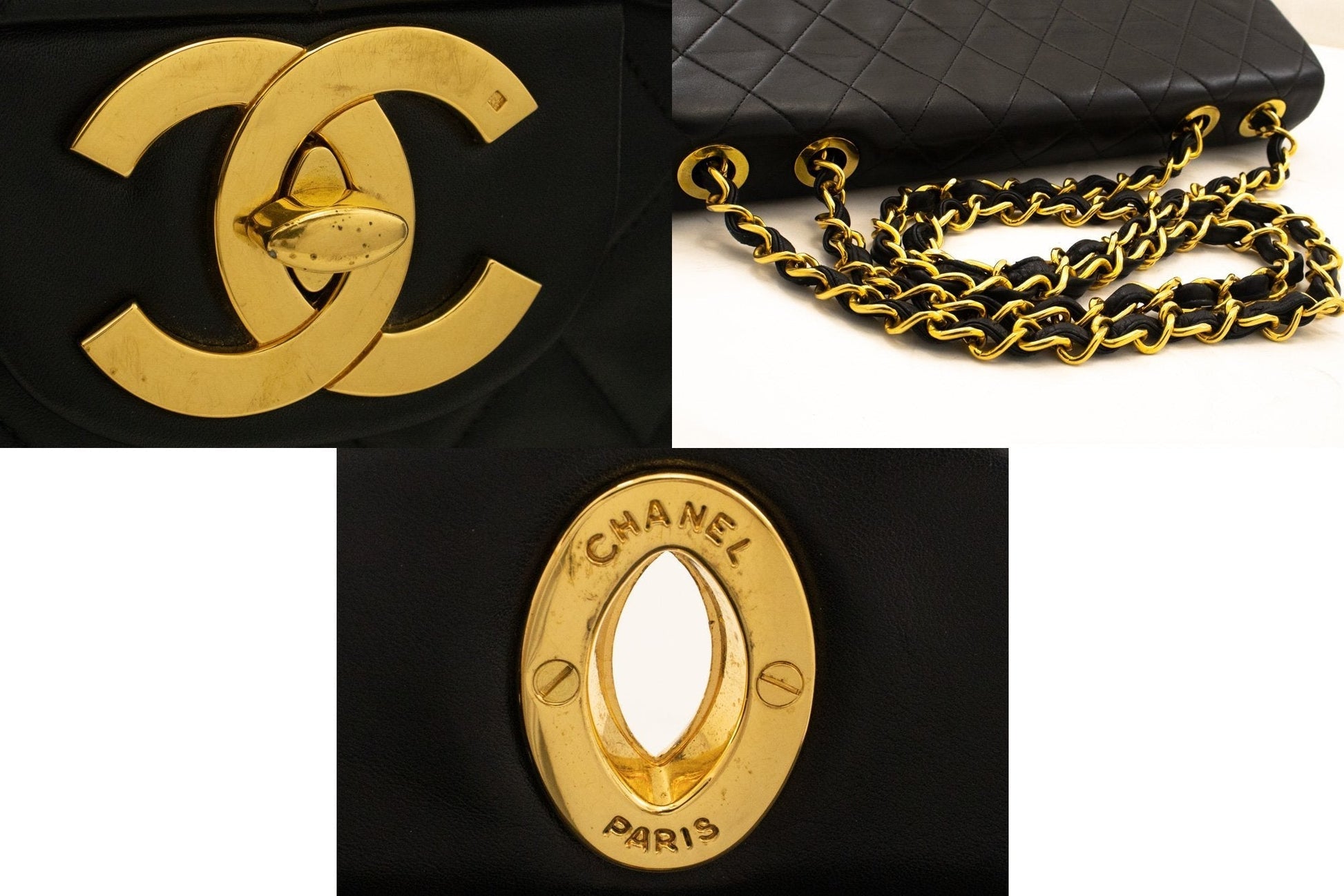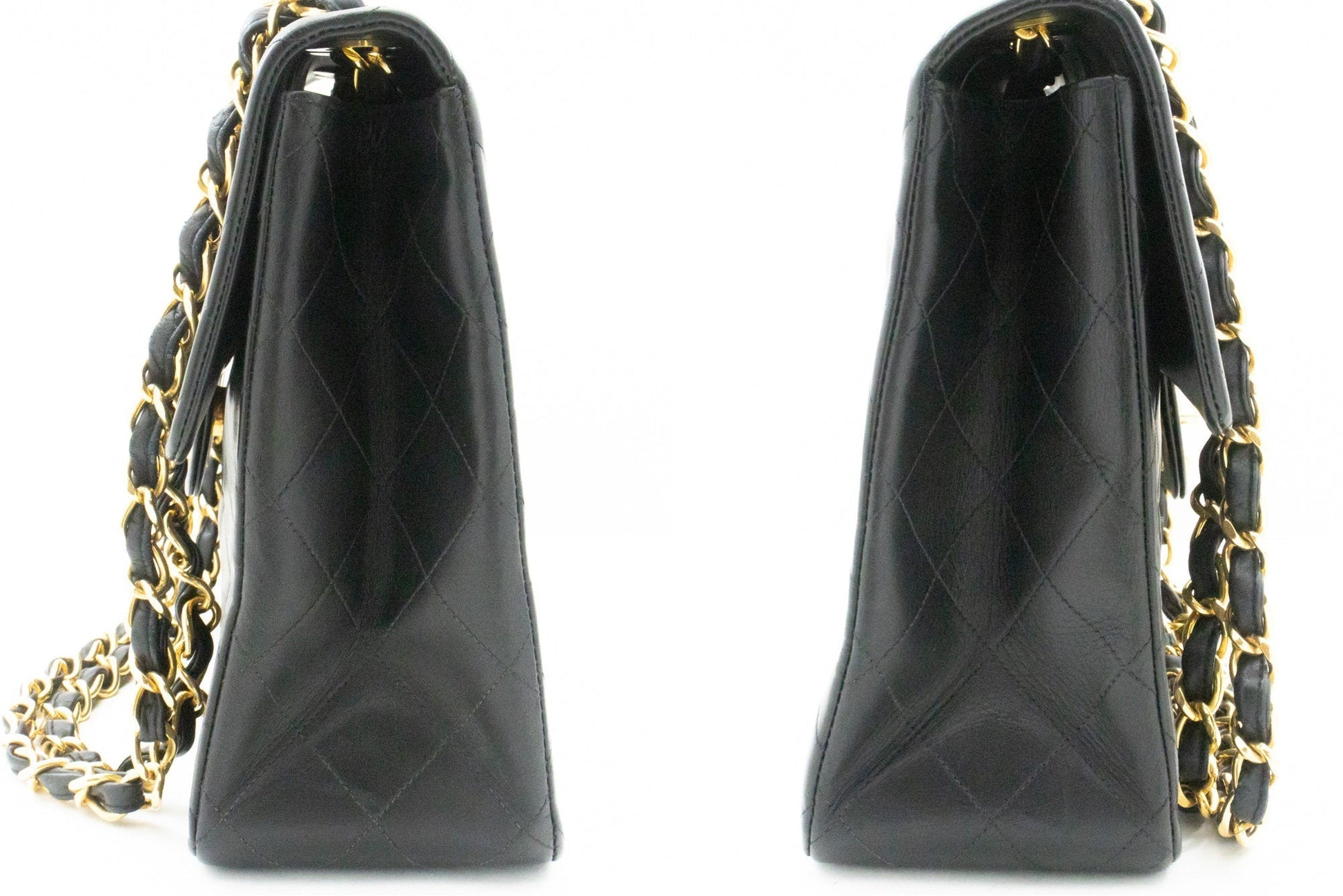 An authentic CHANEL Classic Large 13" Flap Chain Shoulder Bag Black made of black Lambskin j58 This item is Vintage / Classic. The year of manufacture would be 1991-1994.