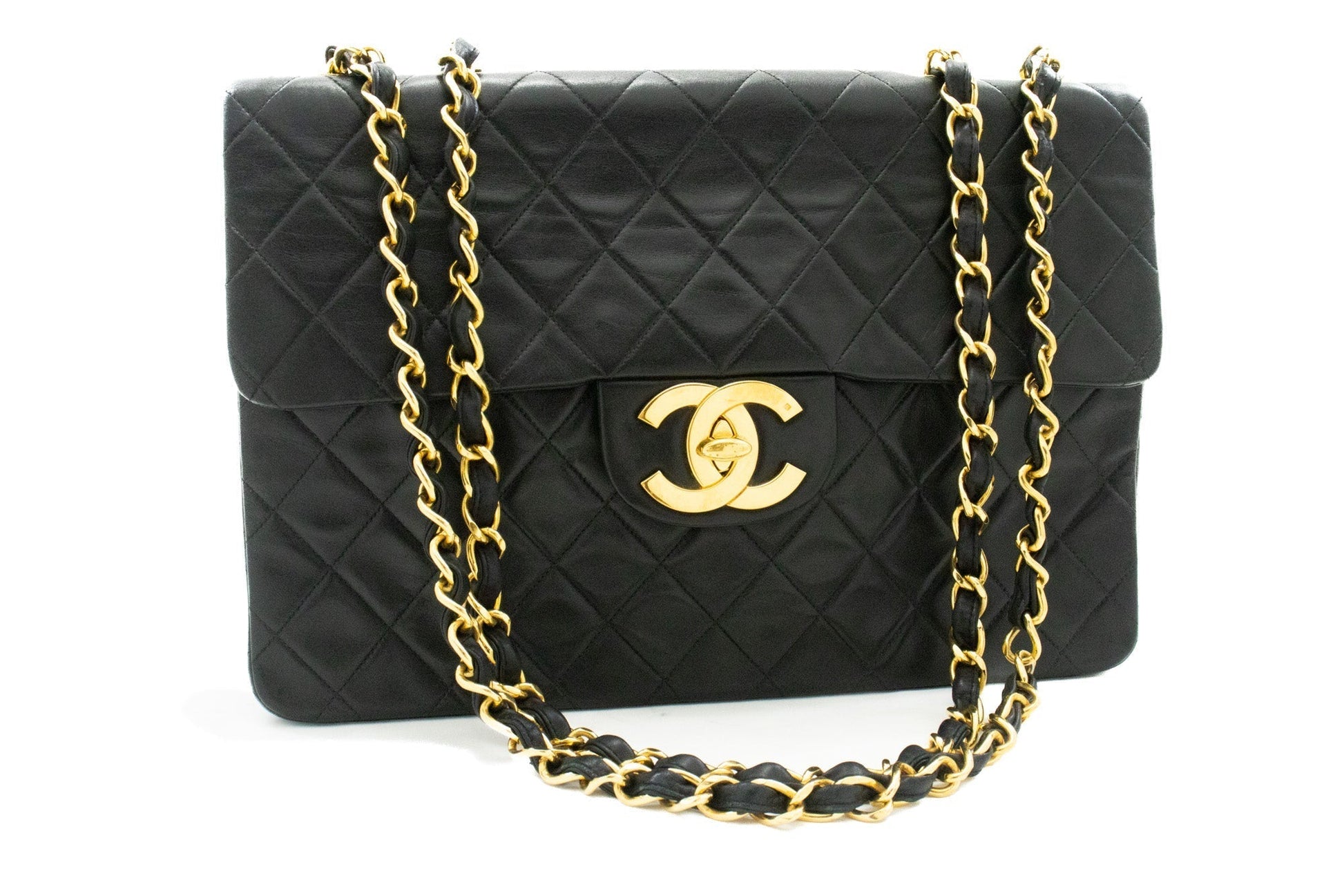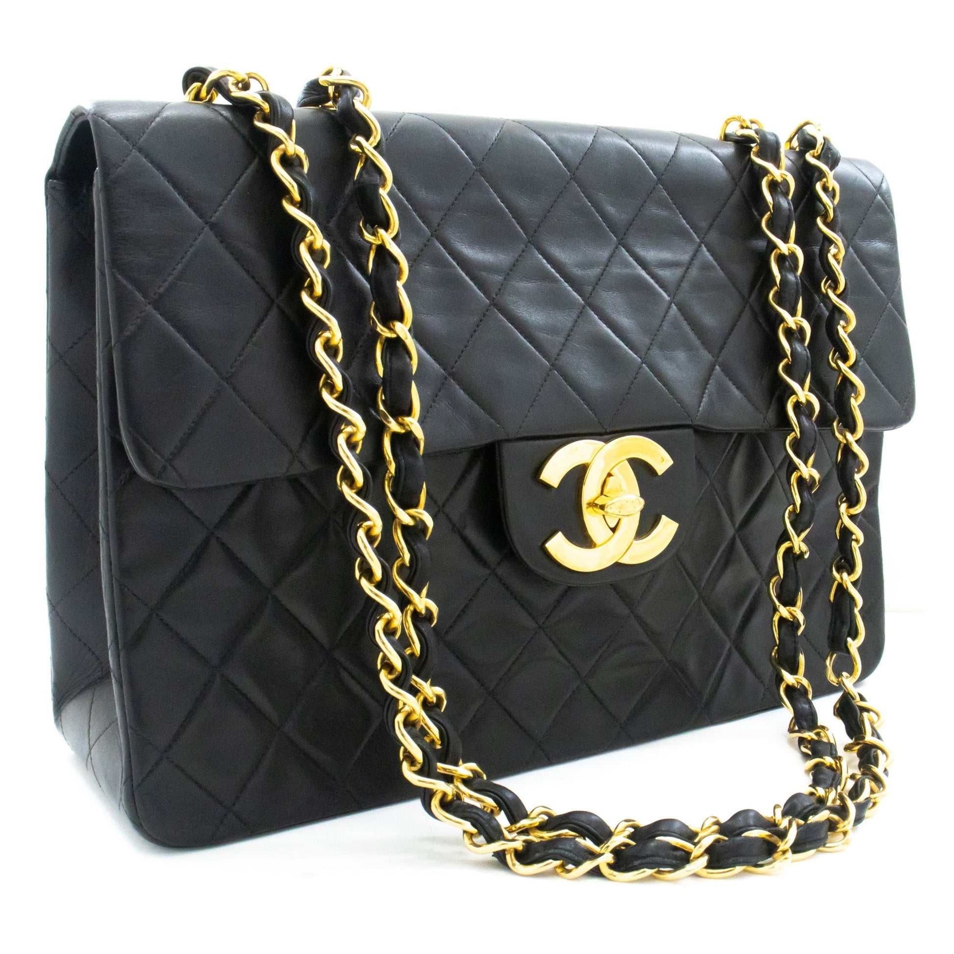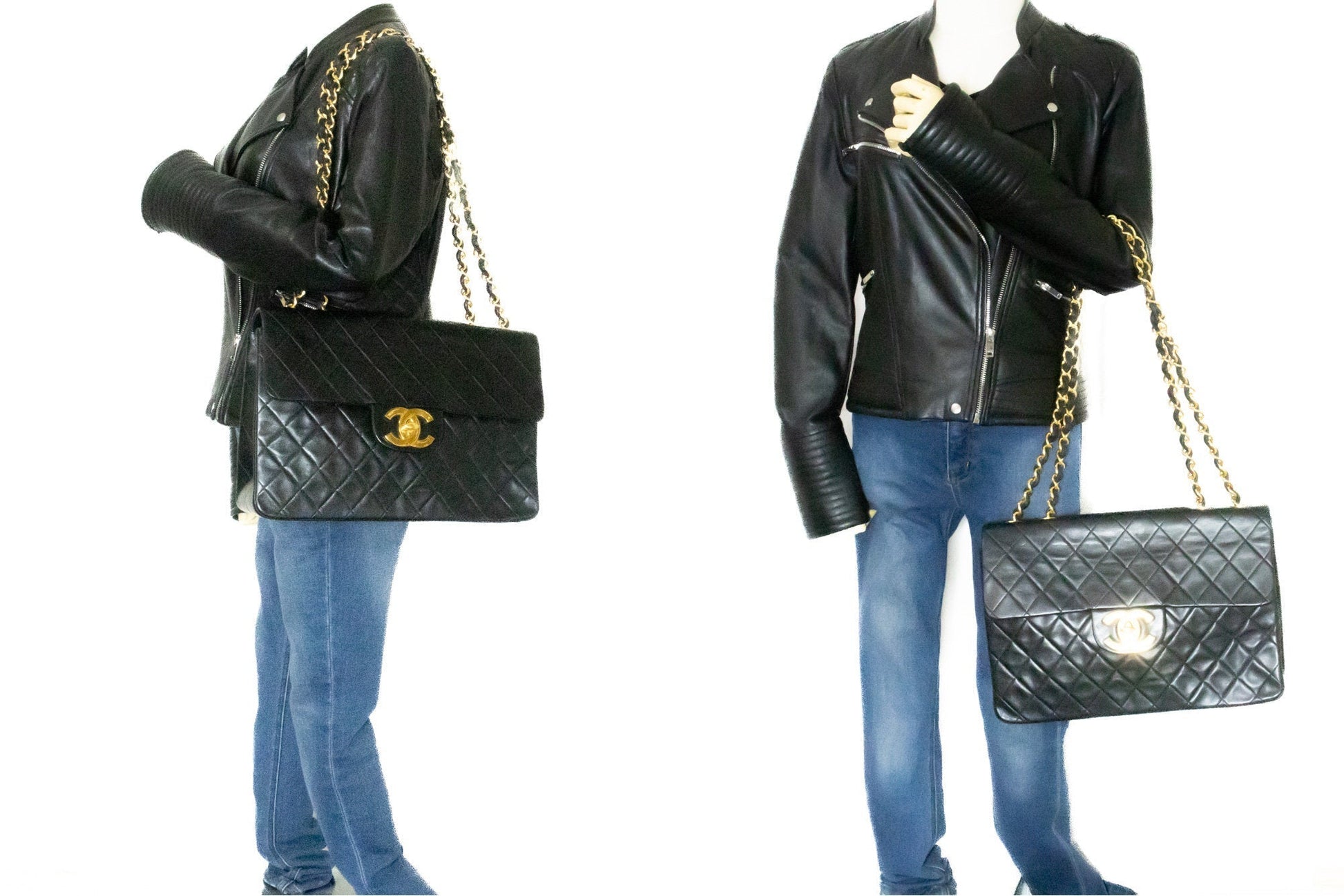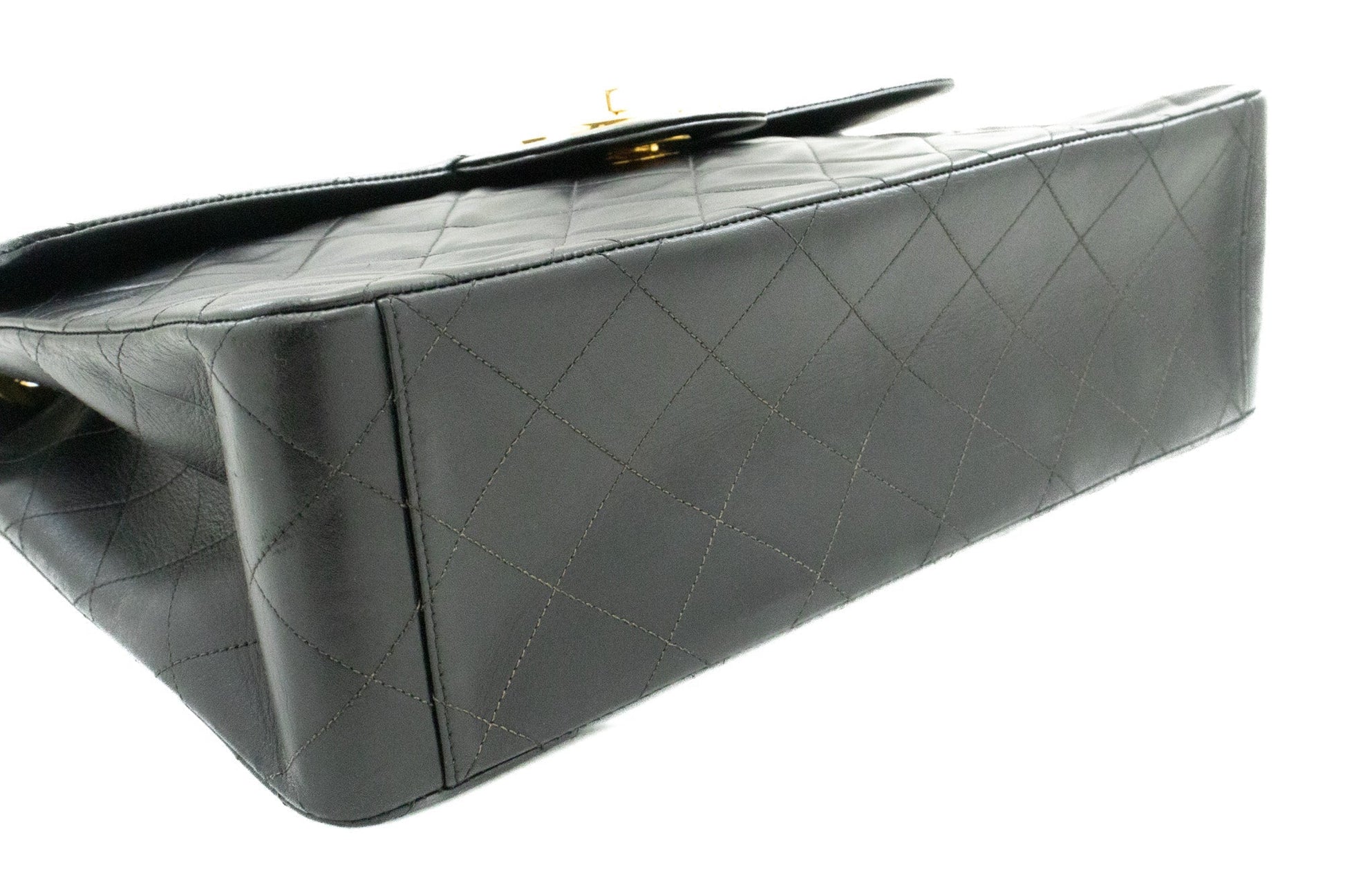 An authentic CHANEL Classic Large 13" Flap Chain Shoulder Bag Black made of black Lambskin j58 This item is Vintage / Classic. The year of manufacture would be 1991-1994.