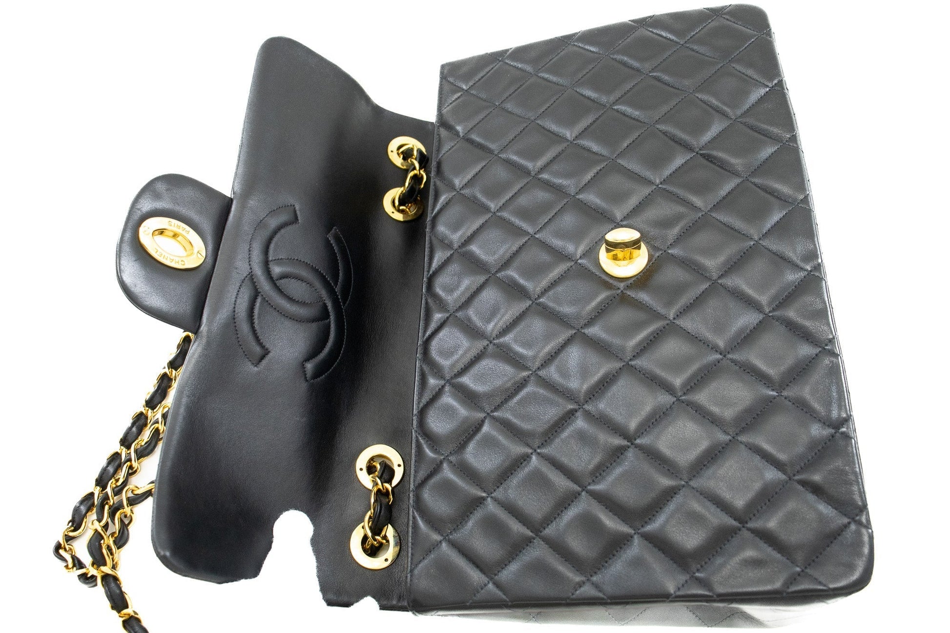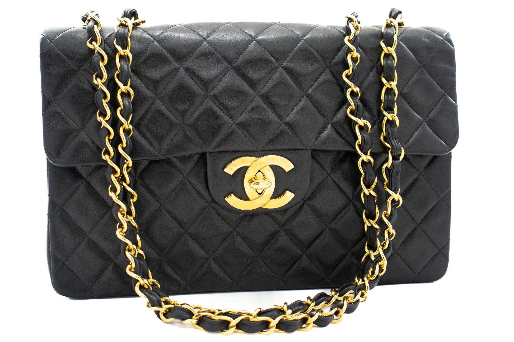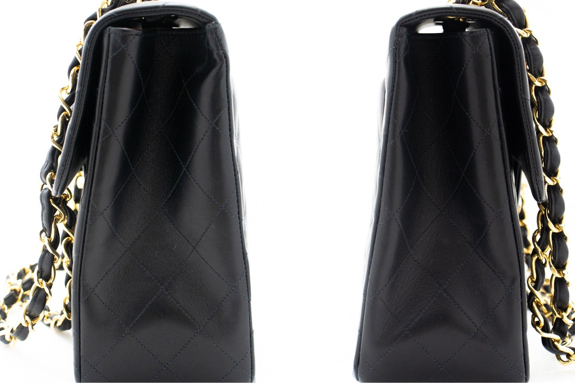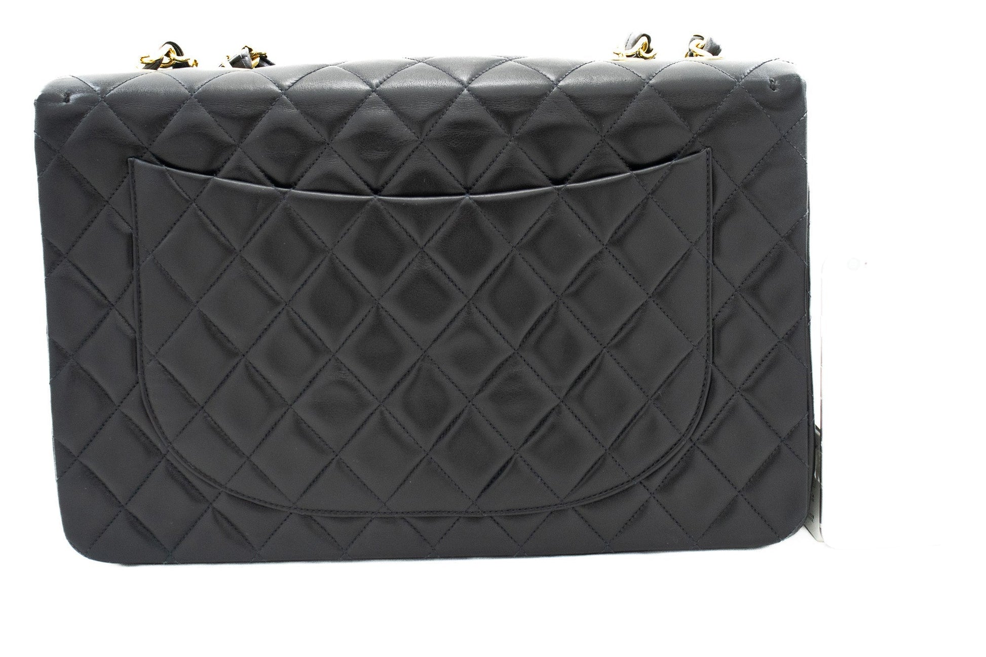 An authentic CHANEL Classic Large 13" Flap Chain Shoulder Bag Black made of black Lambskin j82 This item is Vintage / Classic. The year of manufacture would be 1994-1996.