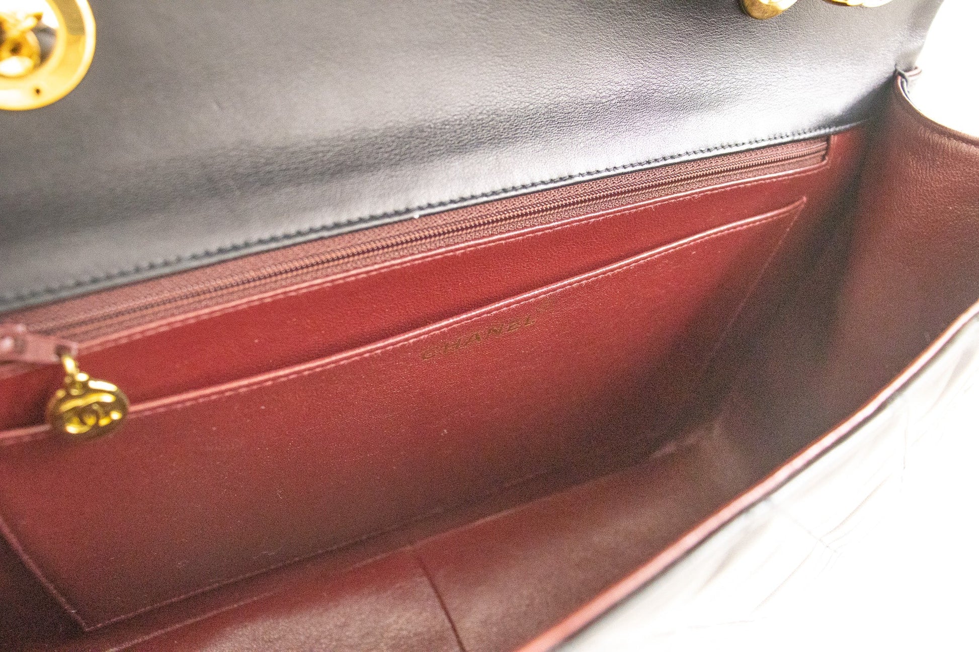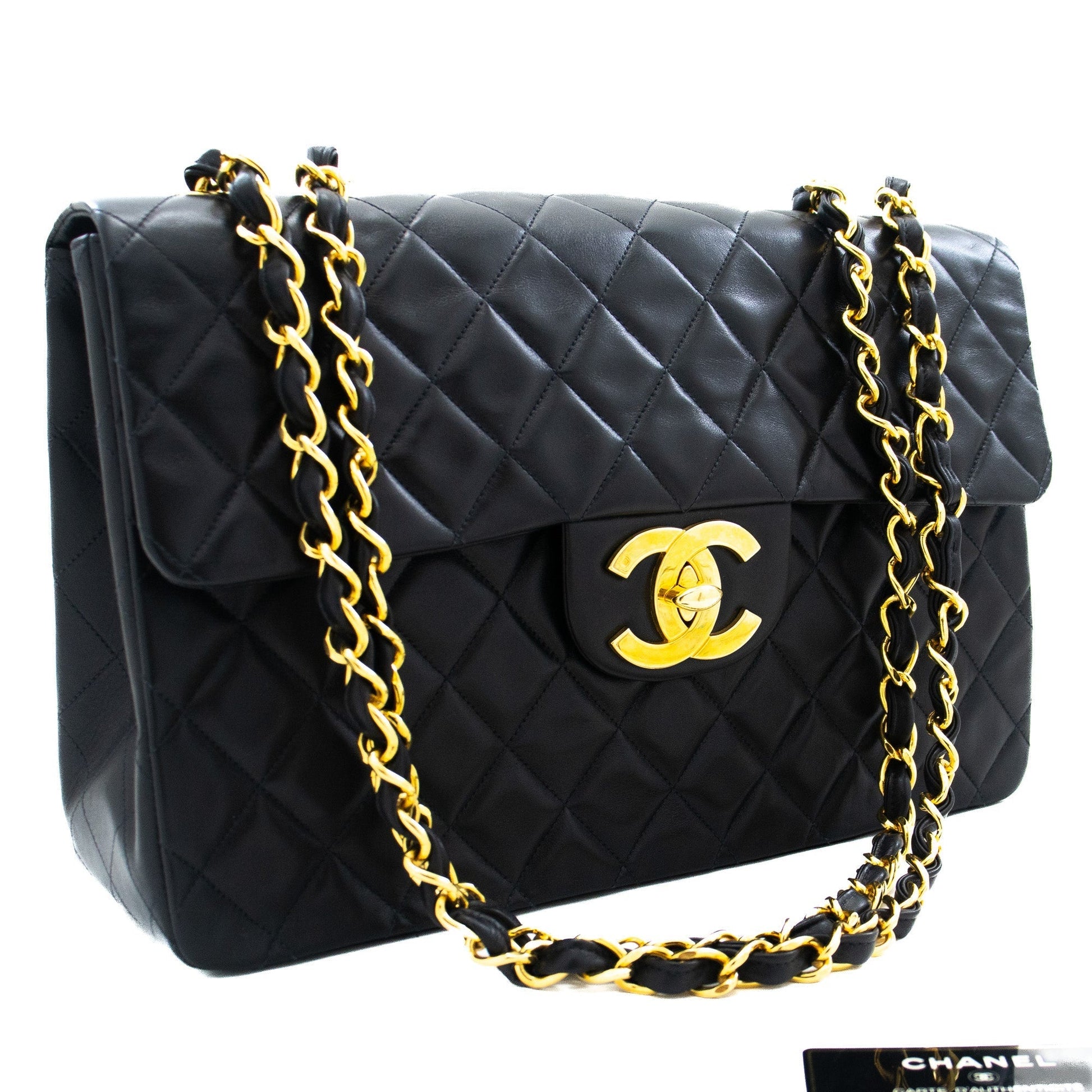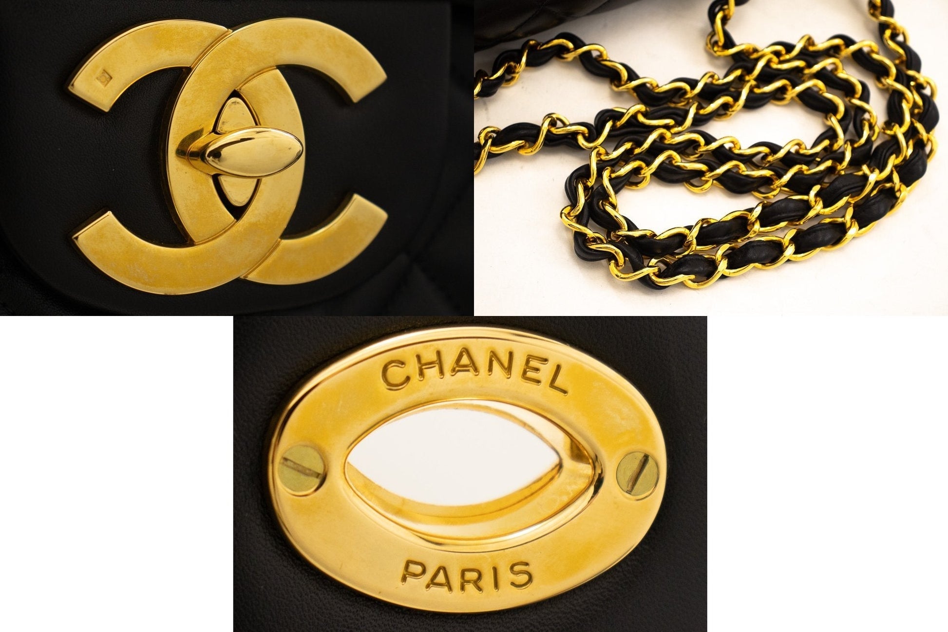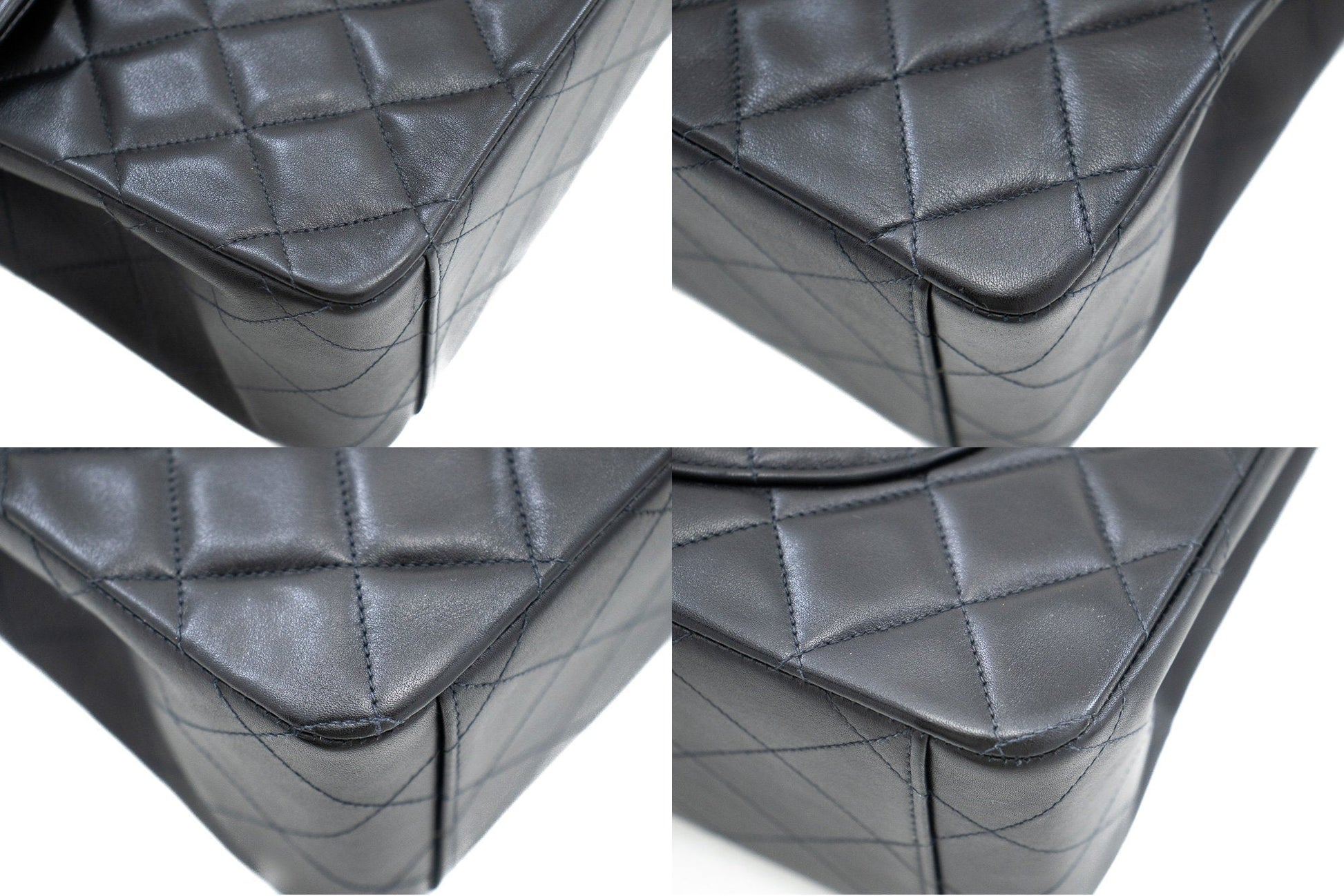 An authentic CHANEL Classic Large 13" Flap Chain Shoulder Bag Black made of black Lambskin j82 This item is Vintage / Classic. The year of manufacture would be 1994-1996.