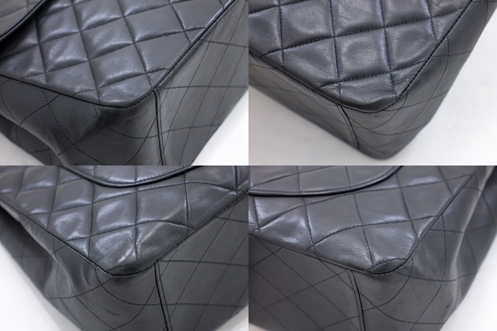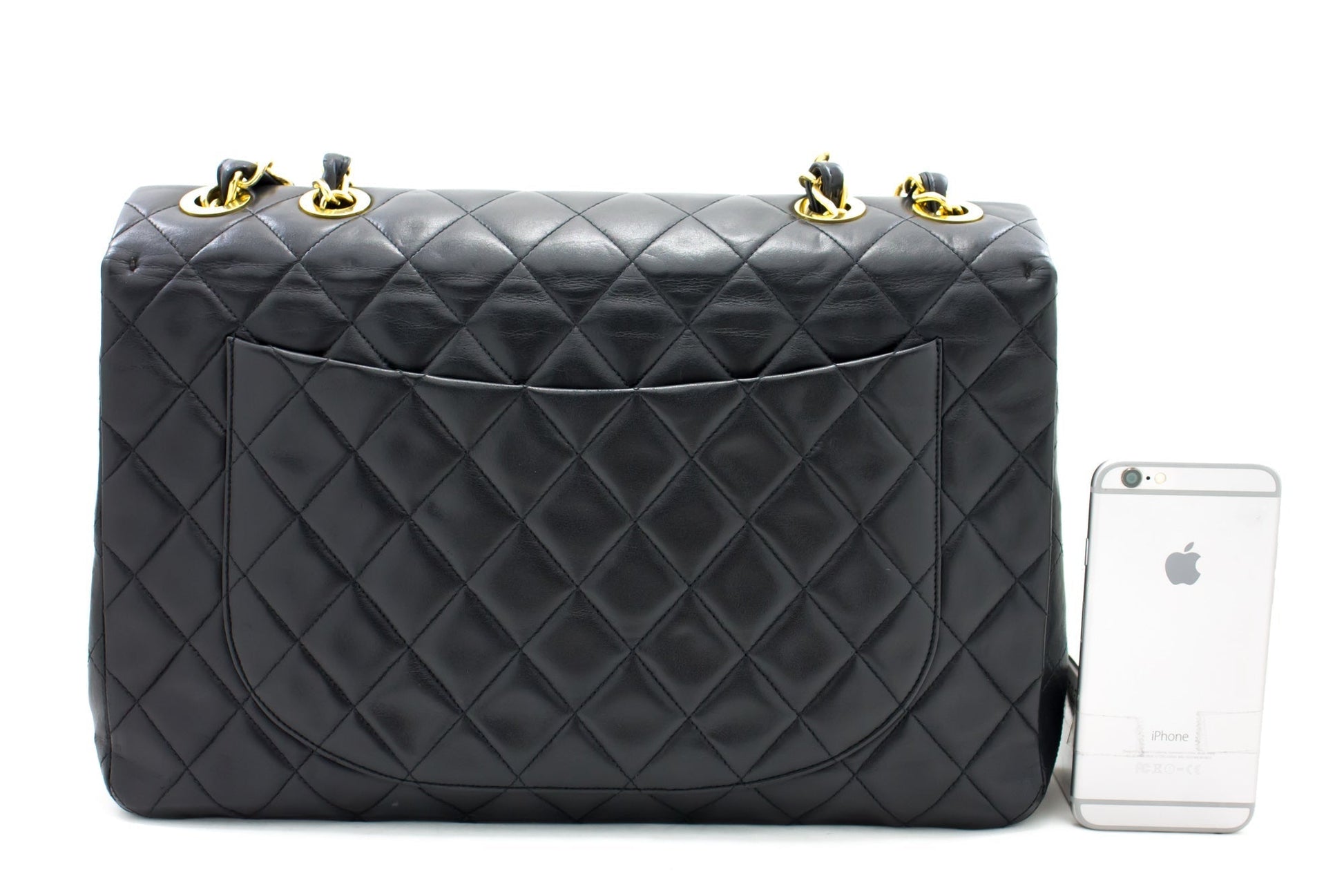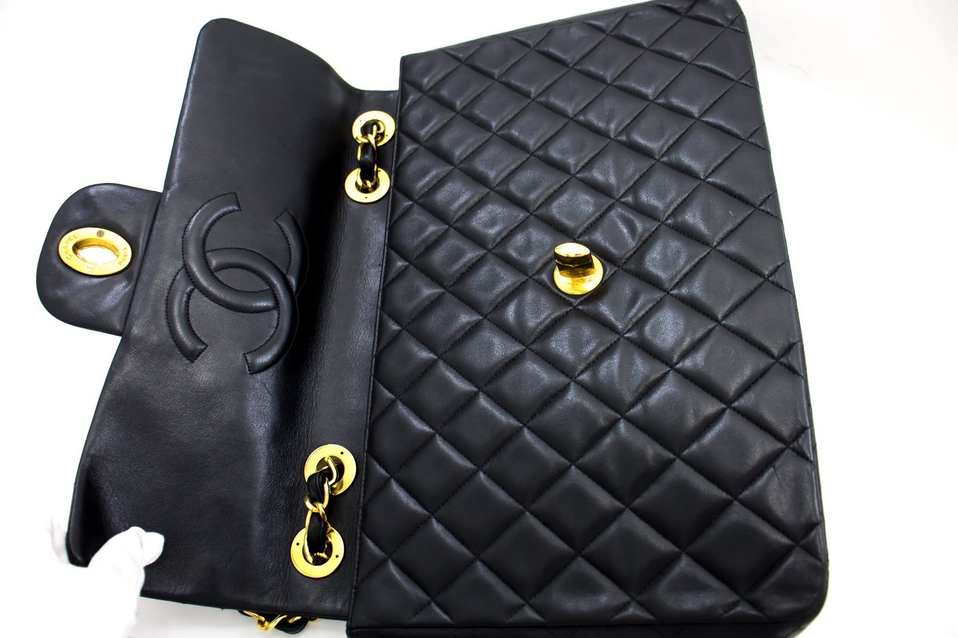 An authentic CHANEL Classic Maxi 13" 2.55 Flap Chain Shoulder Bag Black Lamb h22 This item is Vintage / Classic. The year of manufacture would be 1991-1994.