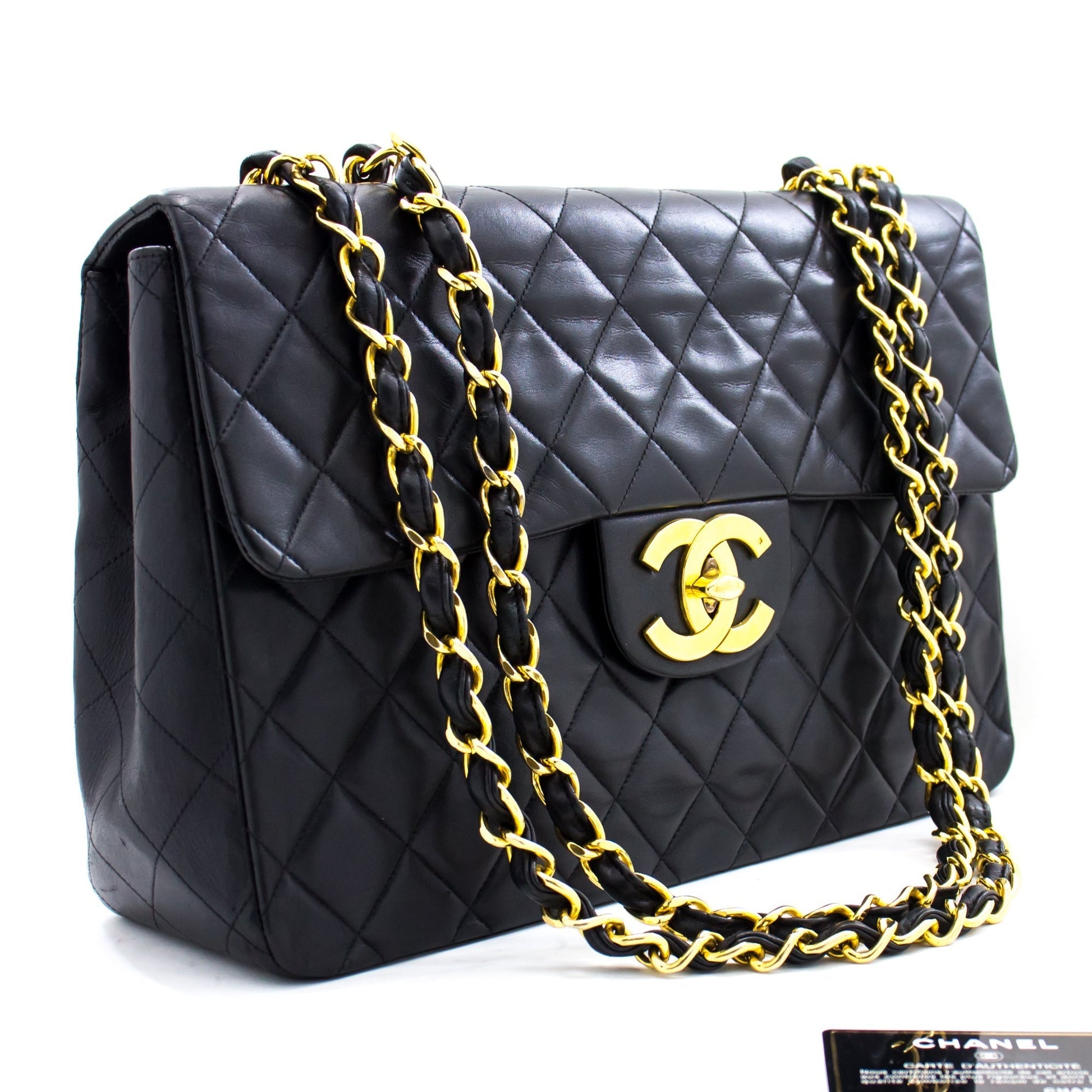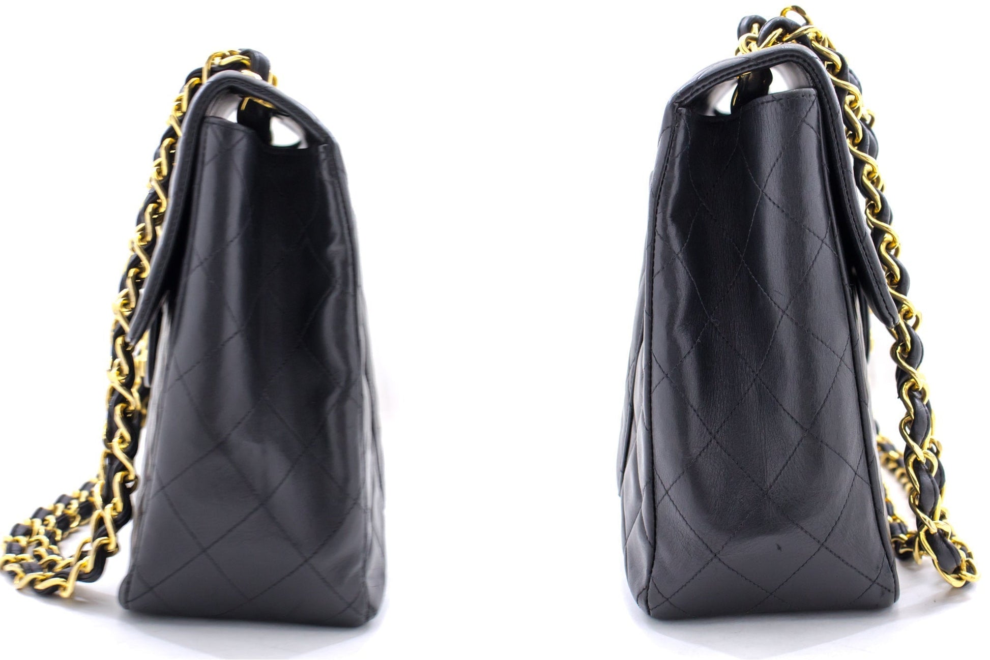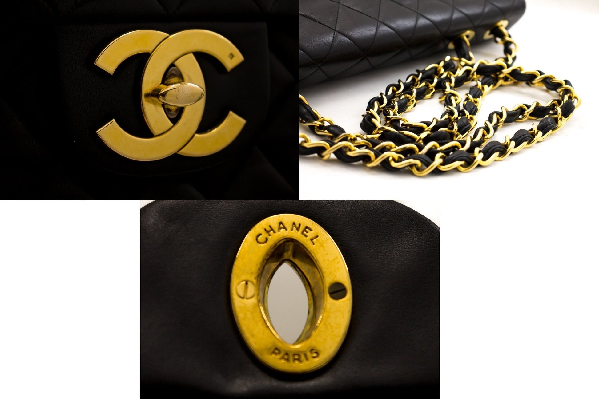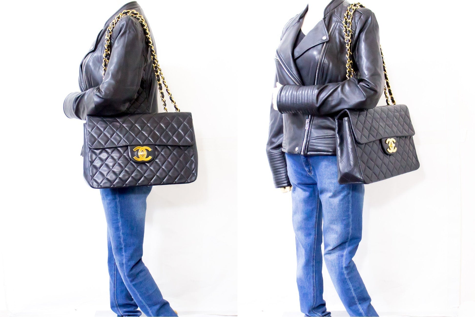 An authentic CHANEL Classic Maxi 13" 2.55 Flap Chain Shoulder Bag Black Lamb h22 This item is Vintage / Classic. The year of manufacture would be 1991-1994.