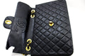 CHANEL Classic Maxi 13" 2.55 Flap Chain Shoulder Bag Black Lamb h22