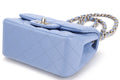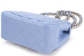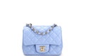 CHANEL CLASSIC MINI SQUARE (3071xxxx) LIGHT BLUE LAMBSKIN LIGHT GOLD HARDWARE, WITH , DUST COVER & BOX