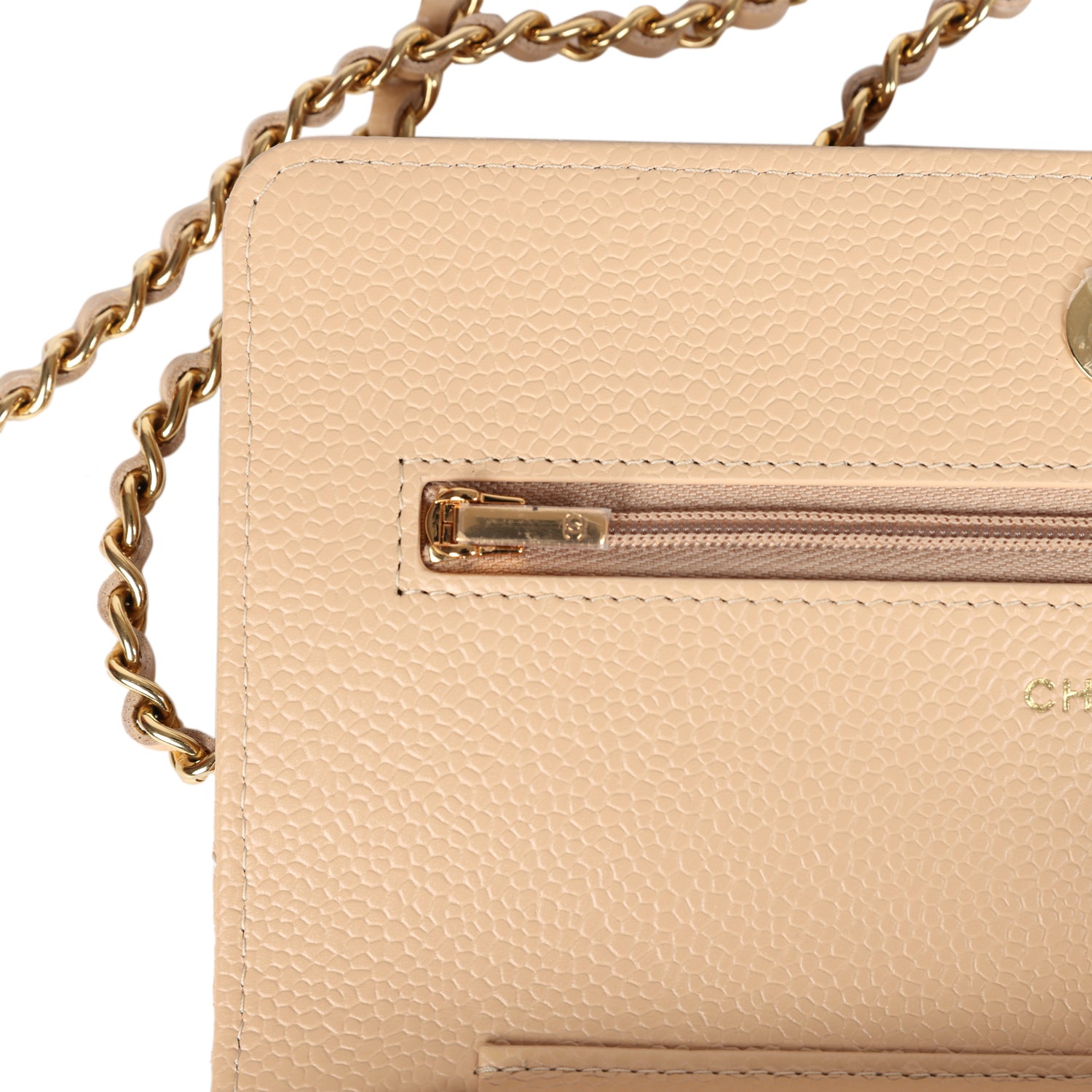 Chanel Wallet On Chain WOC Light Beige Caviar Gold Hardware
