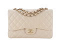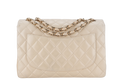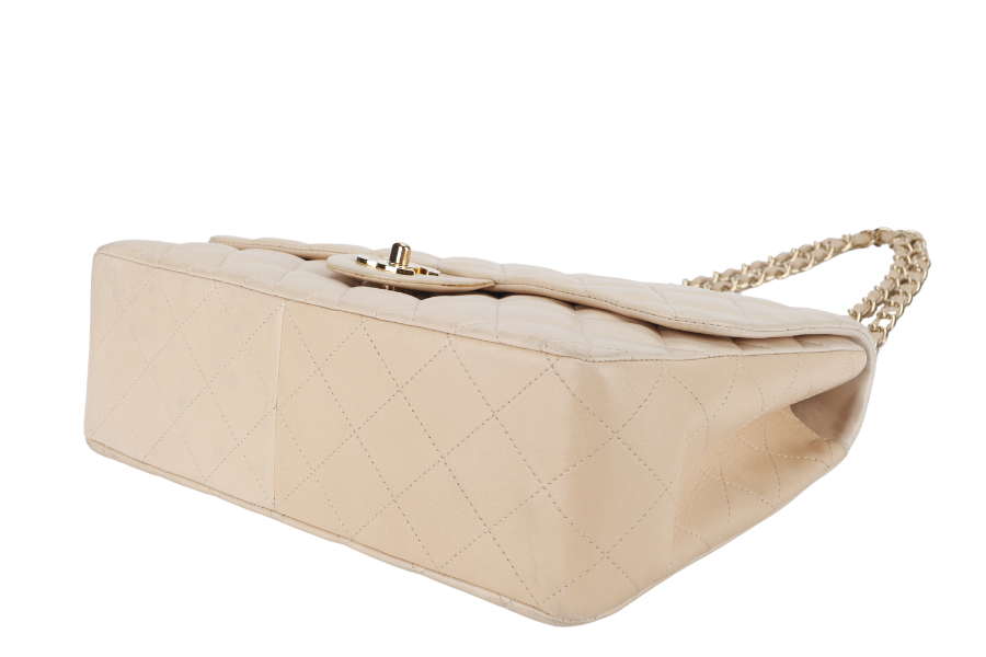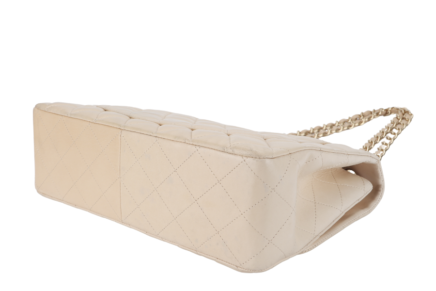 CHANEL CLASSIC SINGLE FLAP (1309xxxx) JUMBO BEIGE LAMBSKIN GOLD HARDWARE WITH