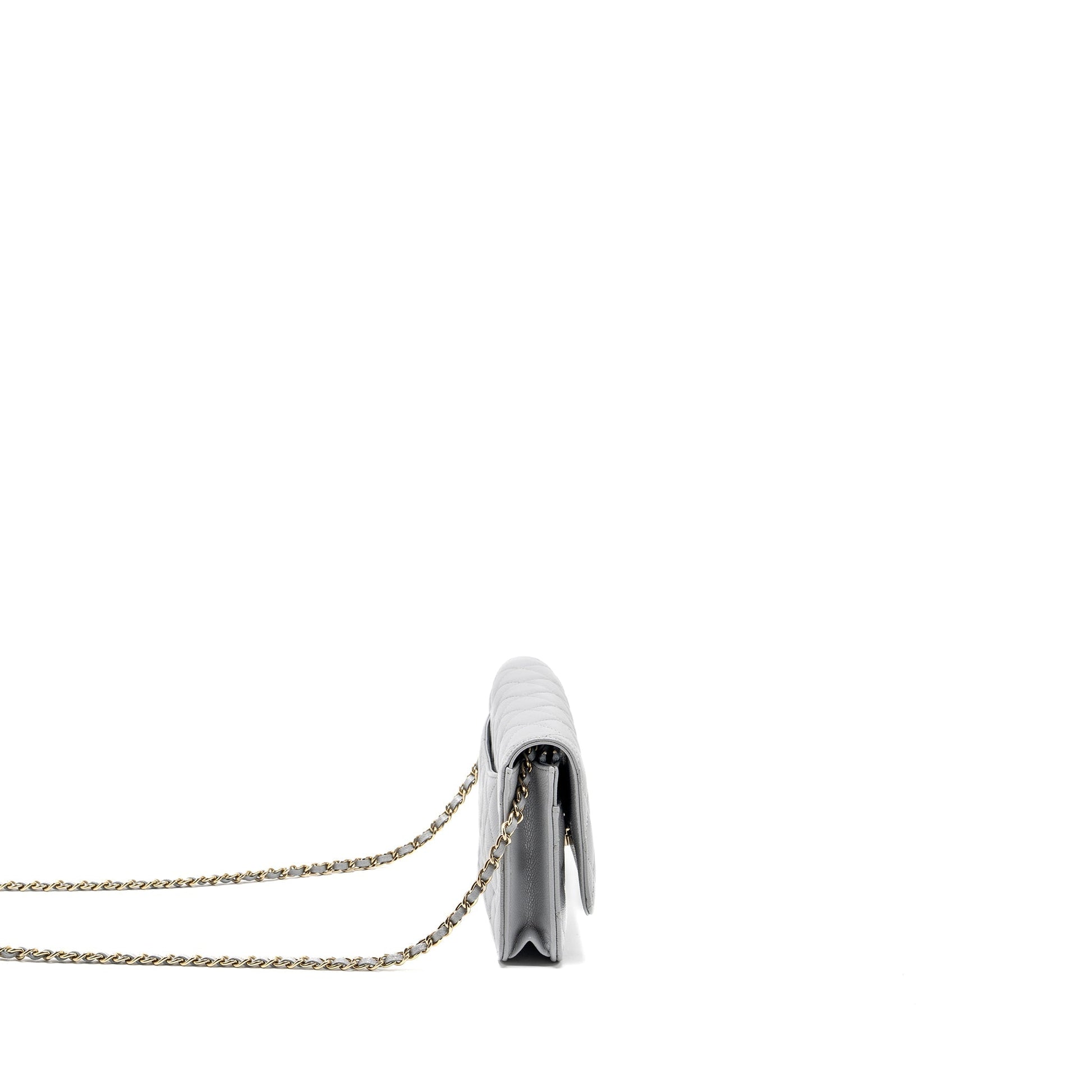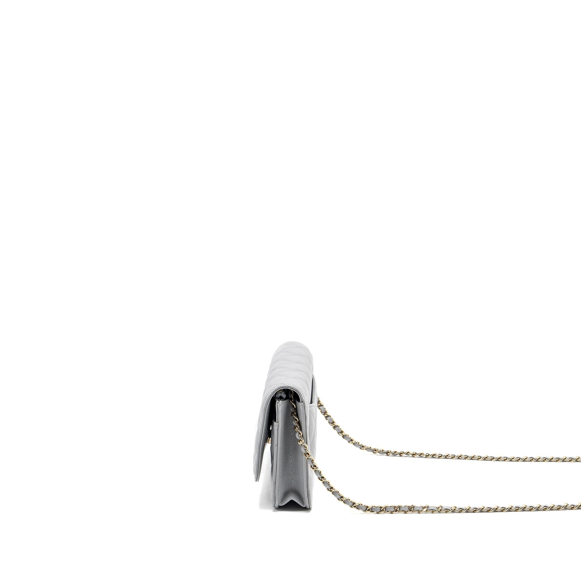 CHANEL Classic Wallet On Chain Caviar Light Grey LGHW (Microchip)