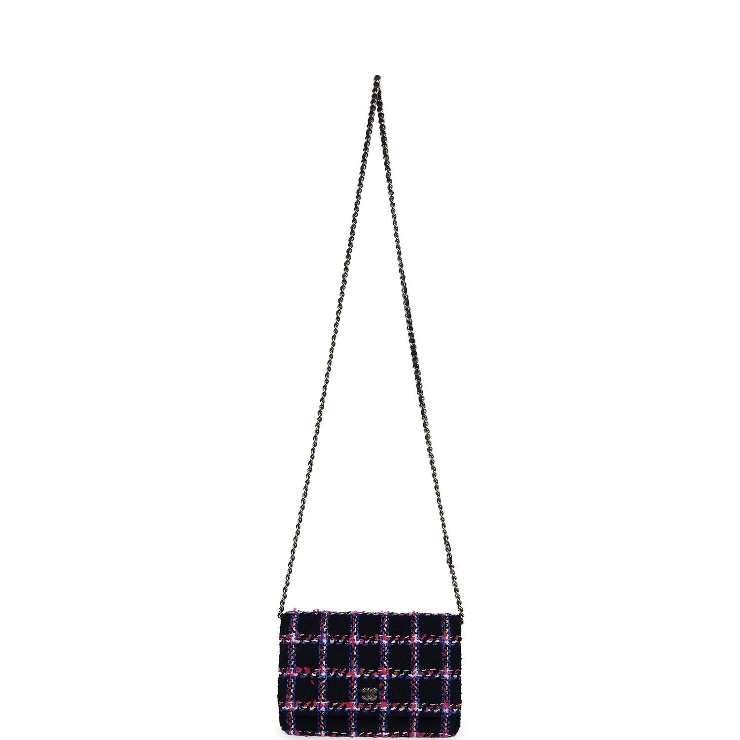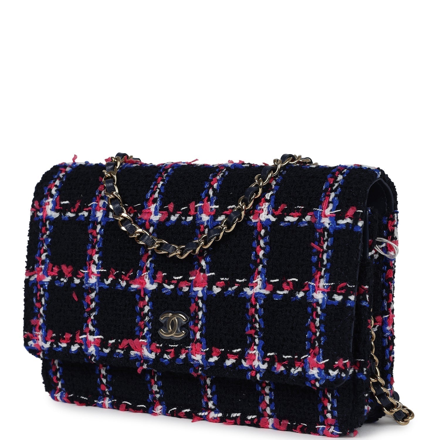Chanel Wallet On Chain WOC Navy Multicolored Tweed Gold Hardware
