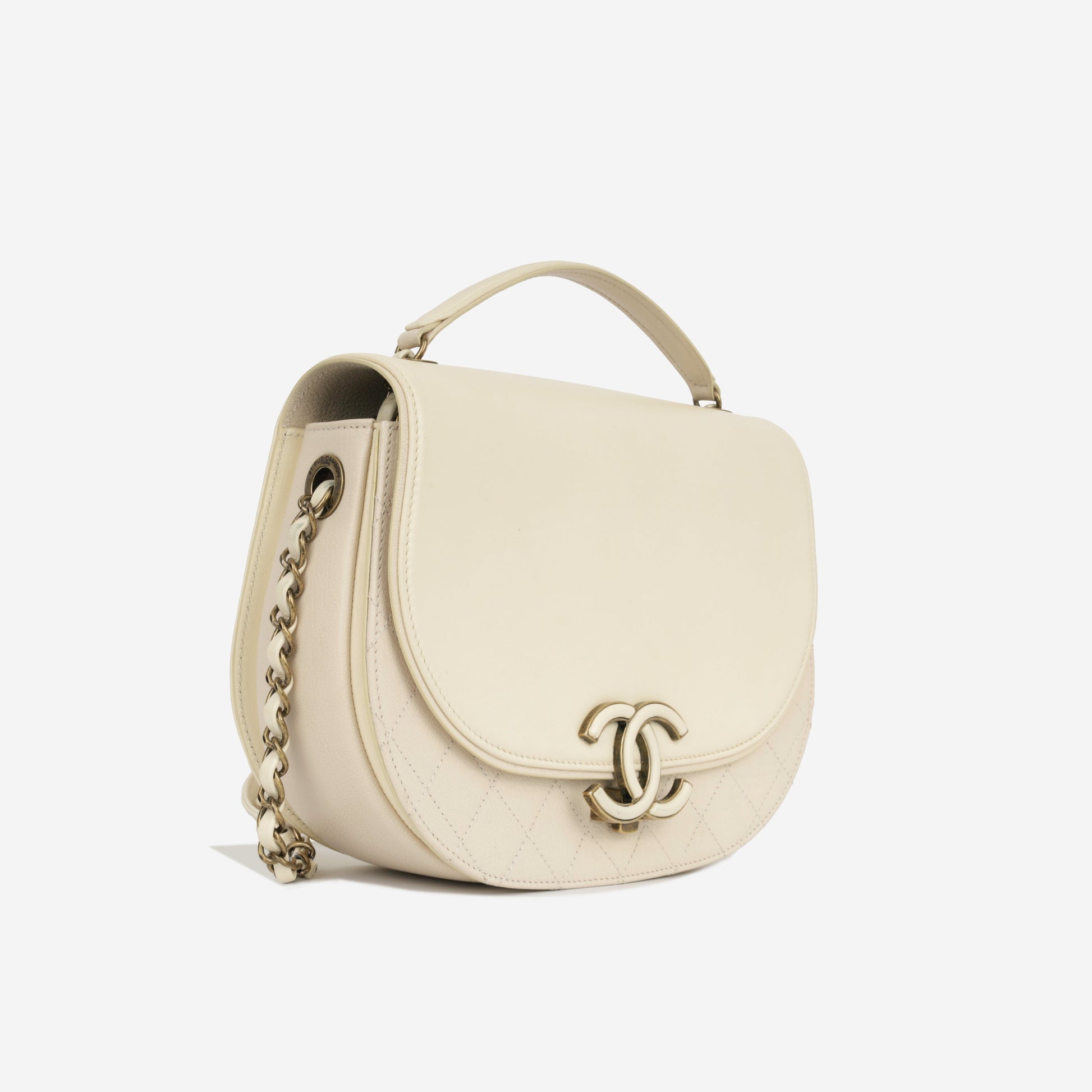 Introduced in the 2016 Pre-Fall collection, the Coco Curve Flap Bag, features smooth leather and diamond quilting. The rounded shape with the added top handle allows the style to be carried or worn on the shoulder.