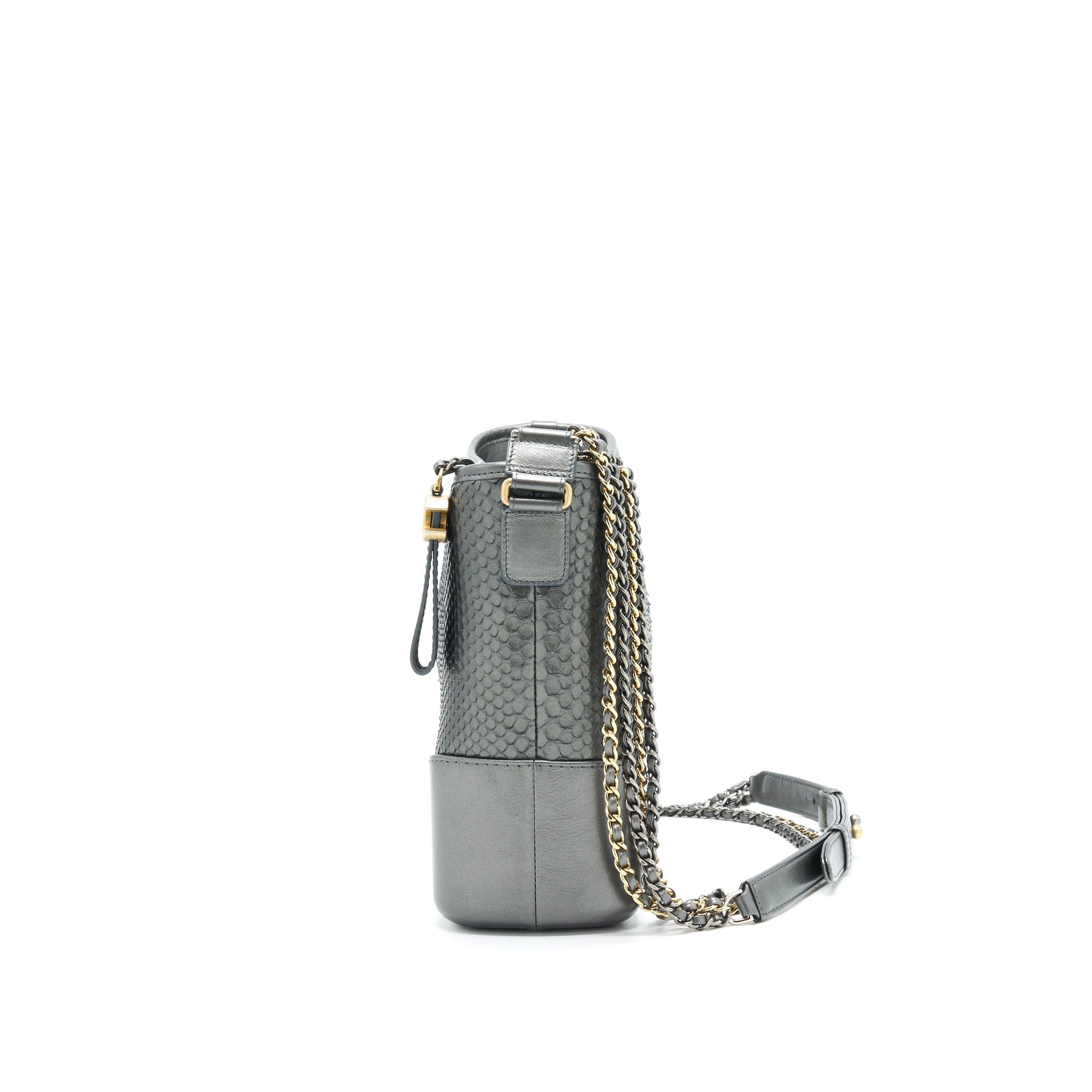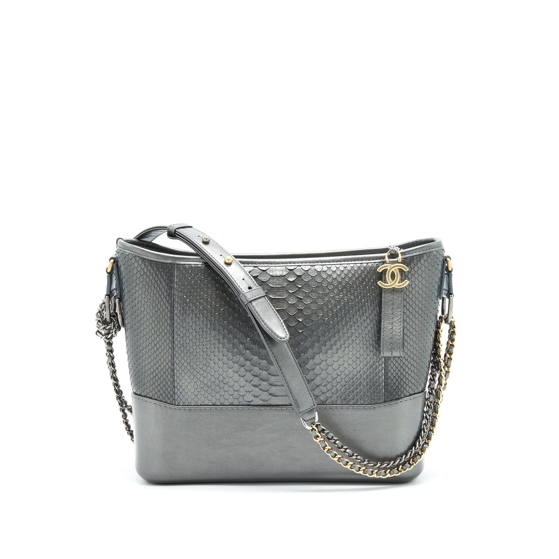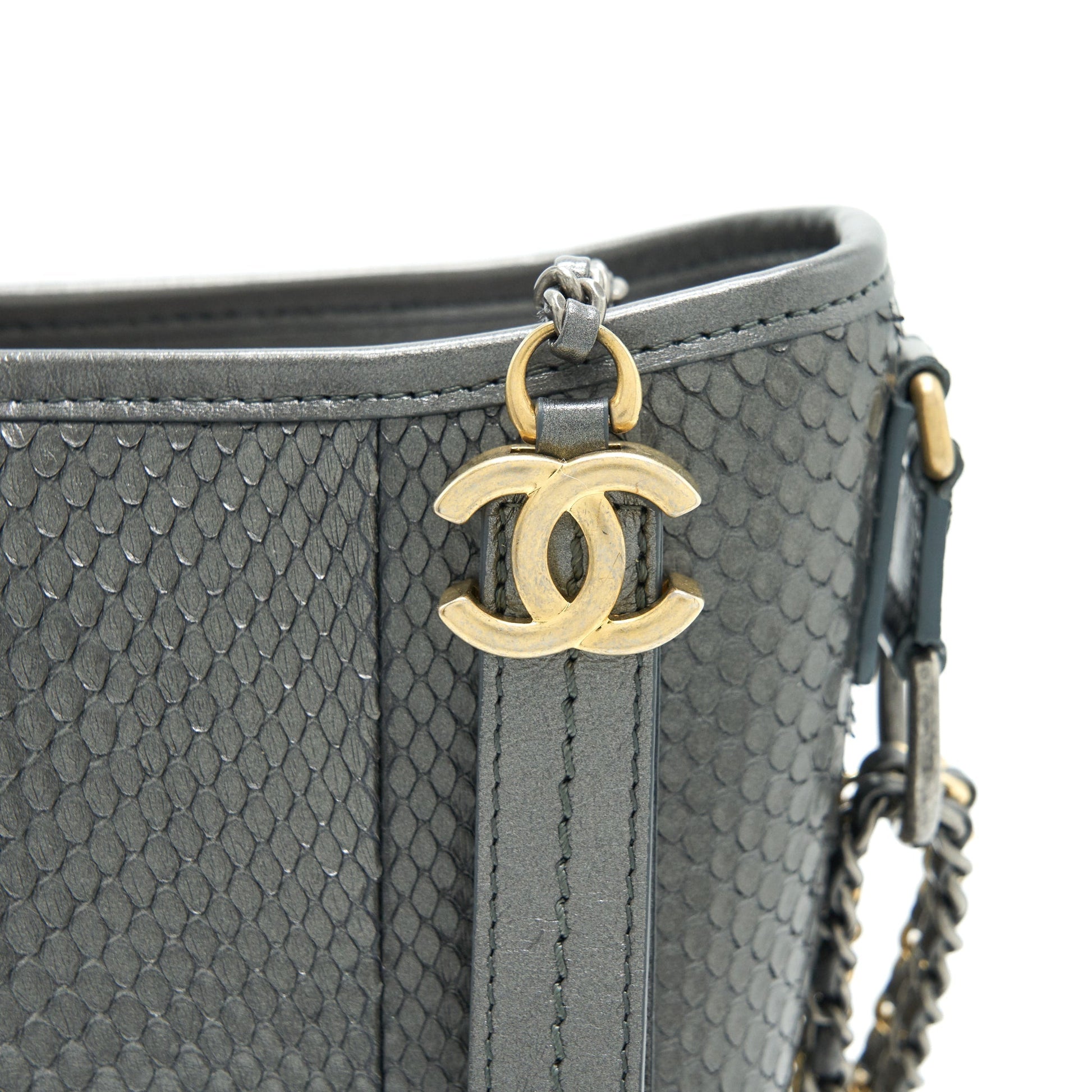 Chanel Python Leather Gabrielle Hobo Bag Metallic Grey