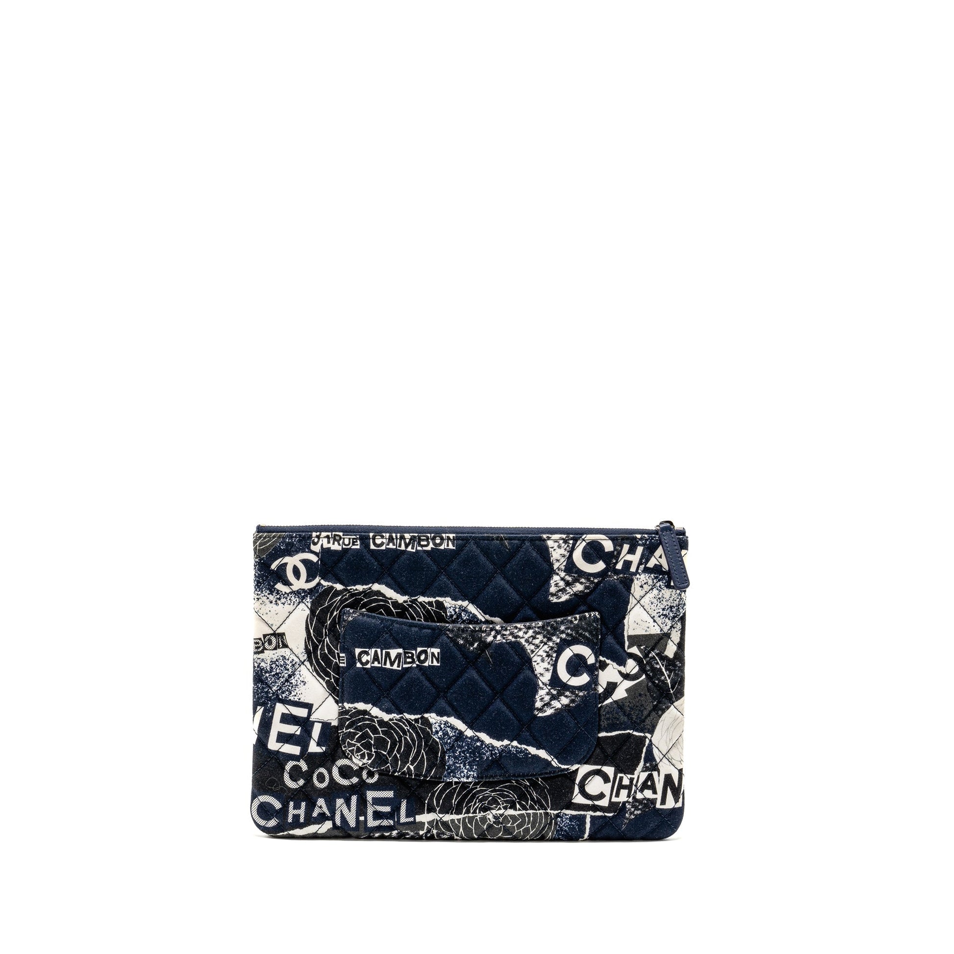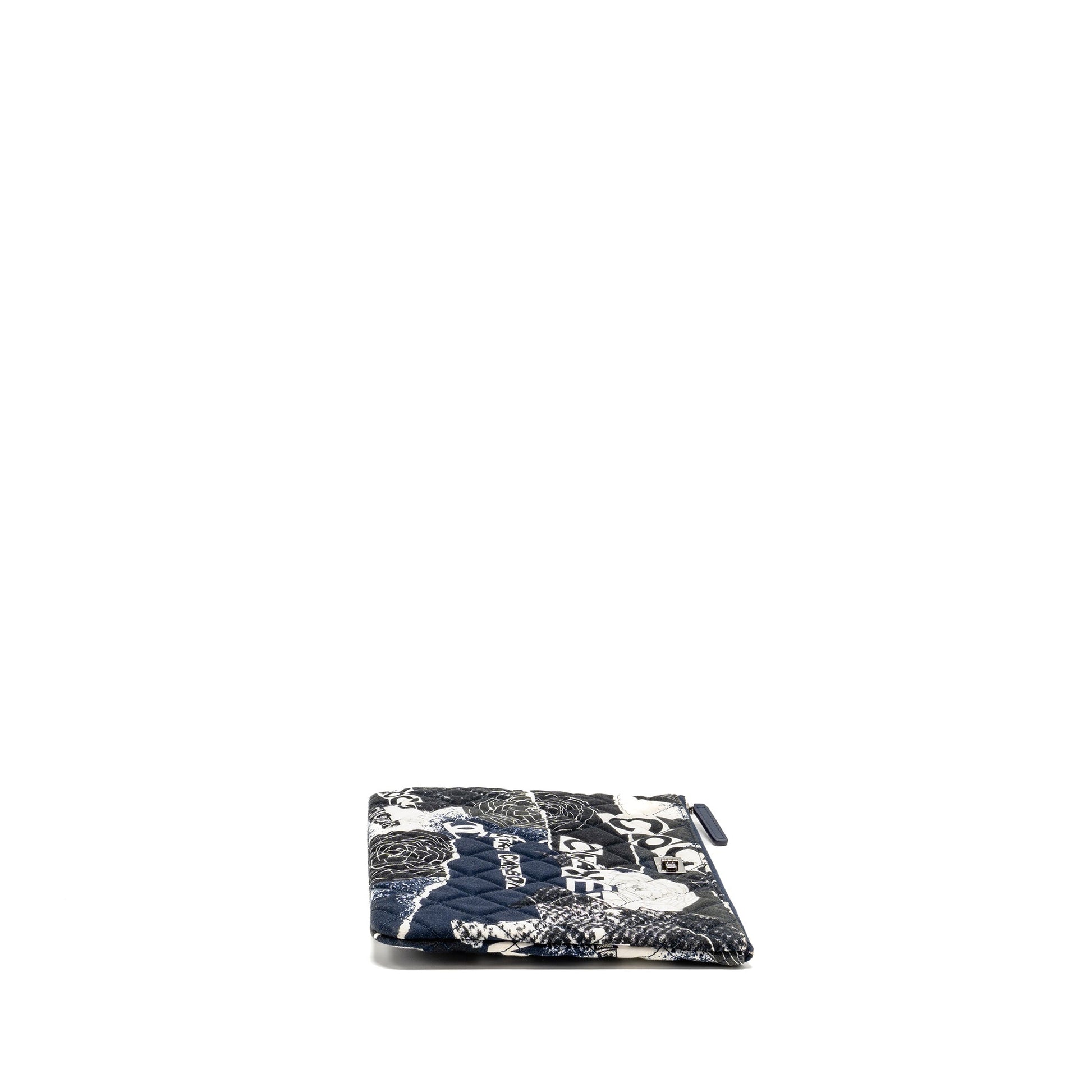 Chanel Coco Printed Medium 2.55 Reissue O-Case Pouch Fabric Black/White Ruthenium SHW