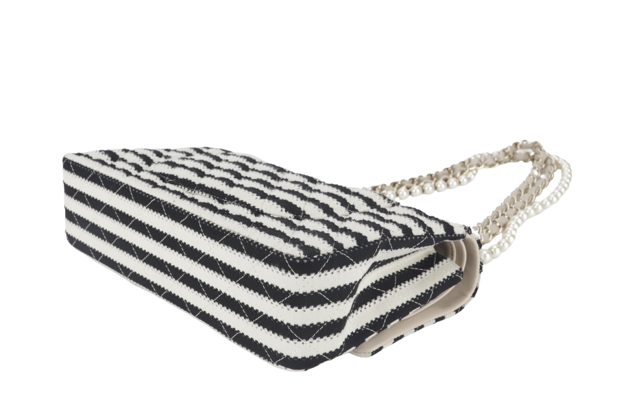CHANEL COCO SAILOR STRIPE (1919xxxx) BLACK & WHITE JERSEY GOLD HARDWARE WITH
