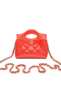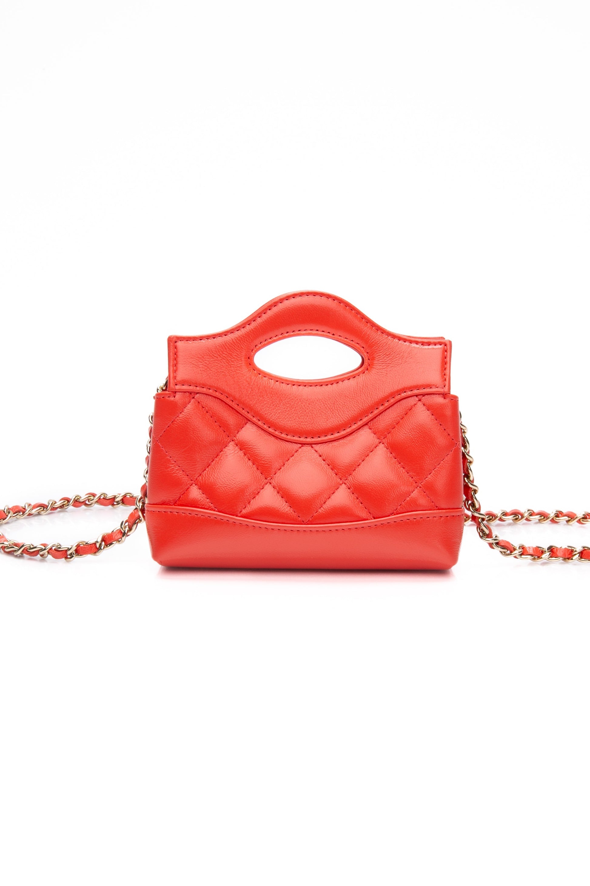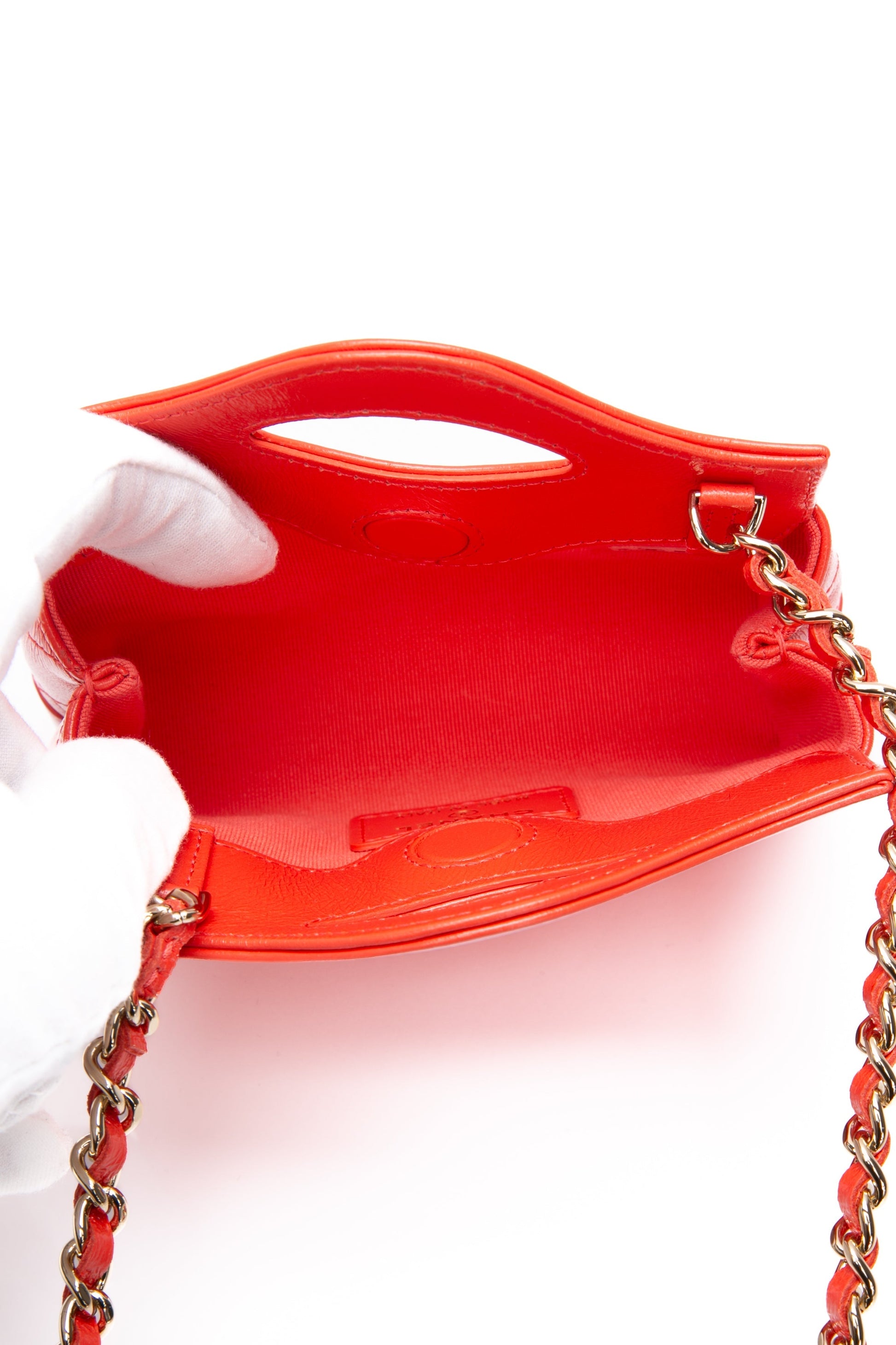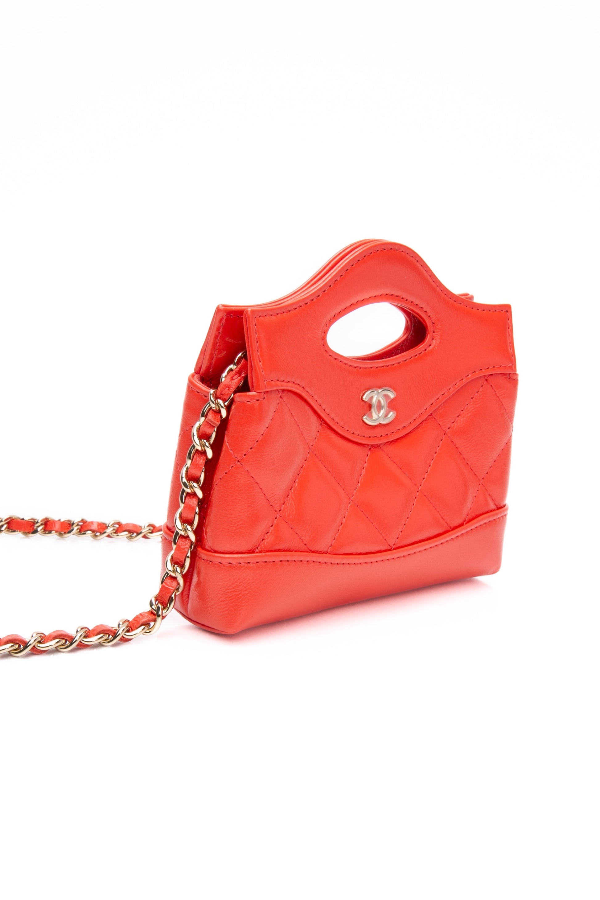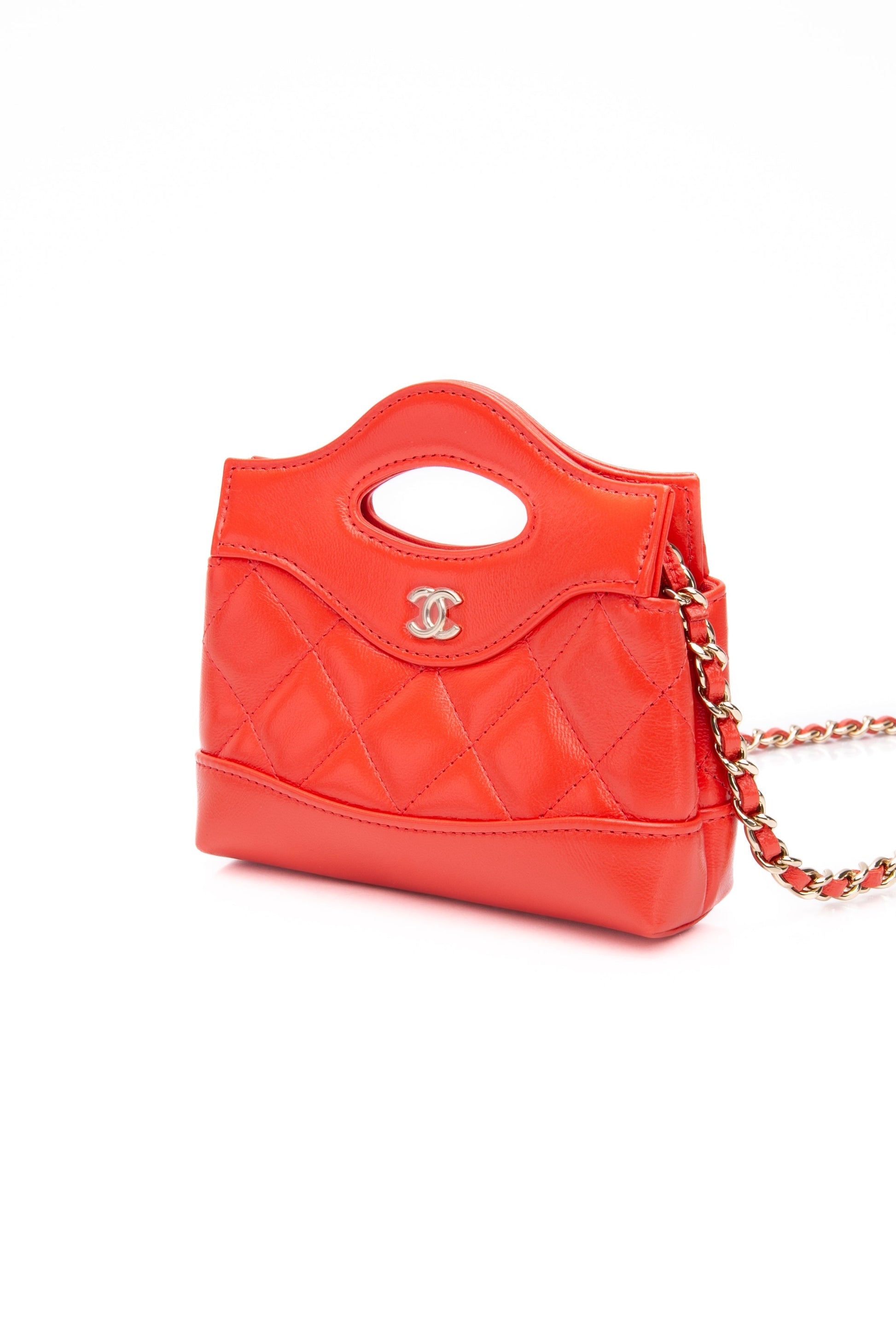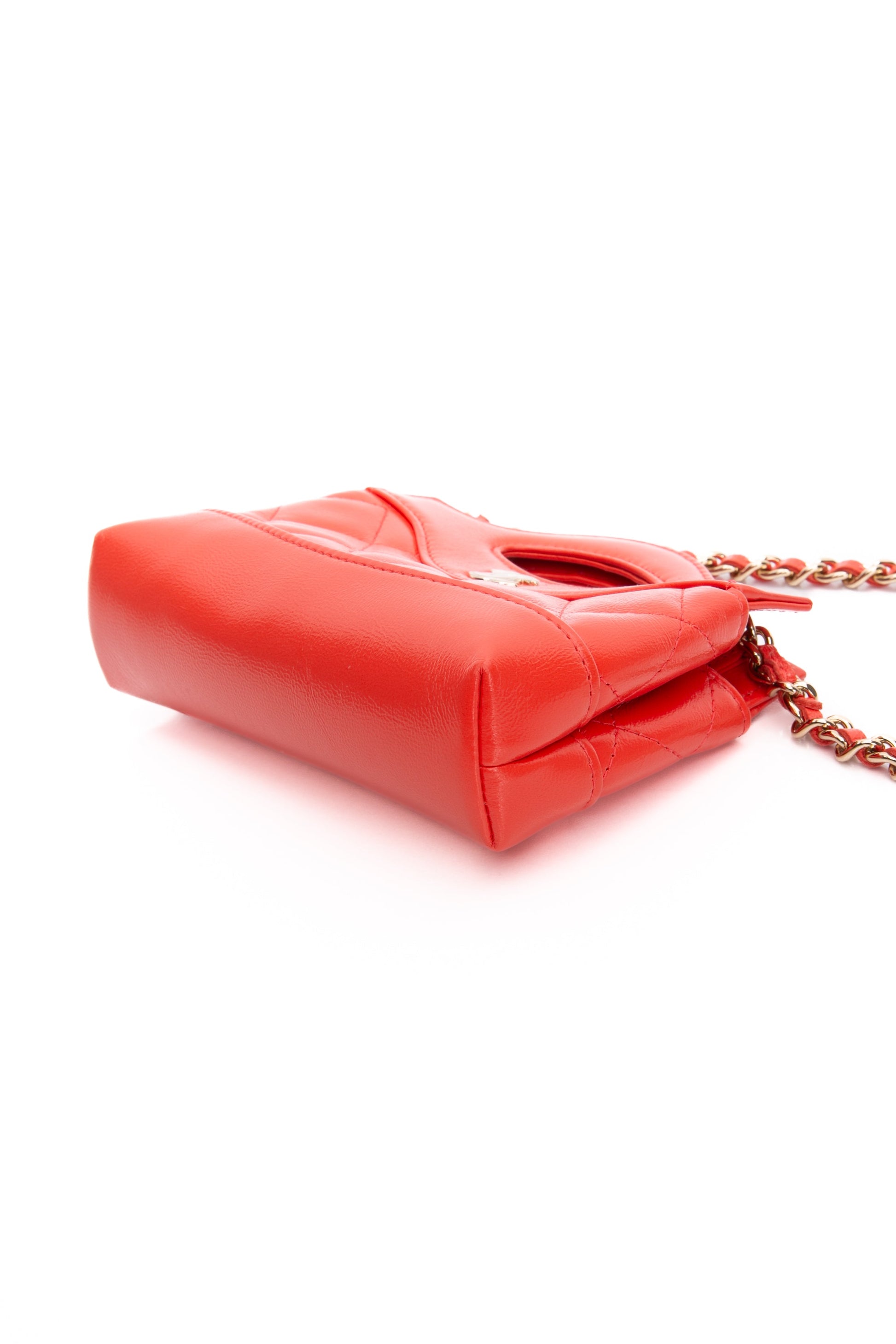 CHANEL Coral Red Shiny Lambskin Quilted Mini 31 Clutch with Chain (New)