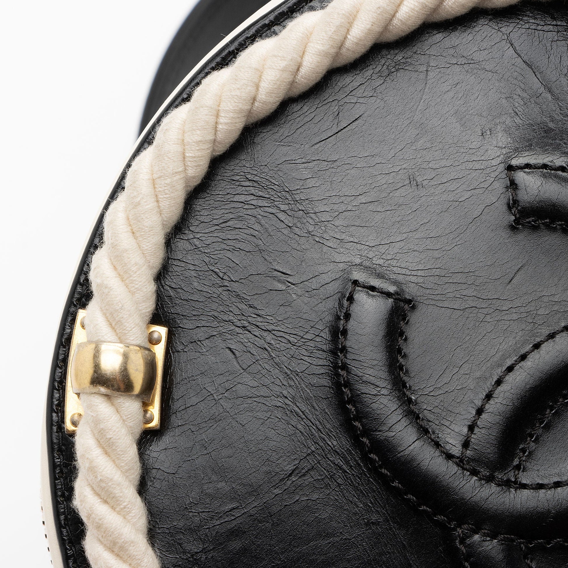 Condition Notes: Light creasing and minor scuffs throughout exterior. Light darkening and marks throughout exterior rope. Light surface scratches to hardware. Light marks throughout interior.