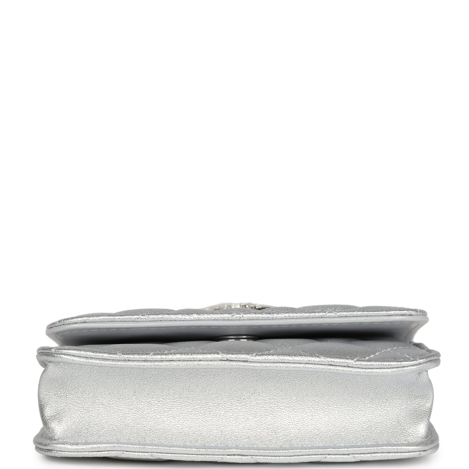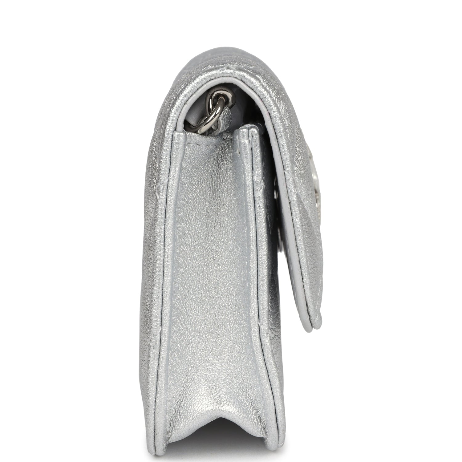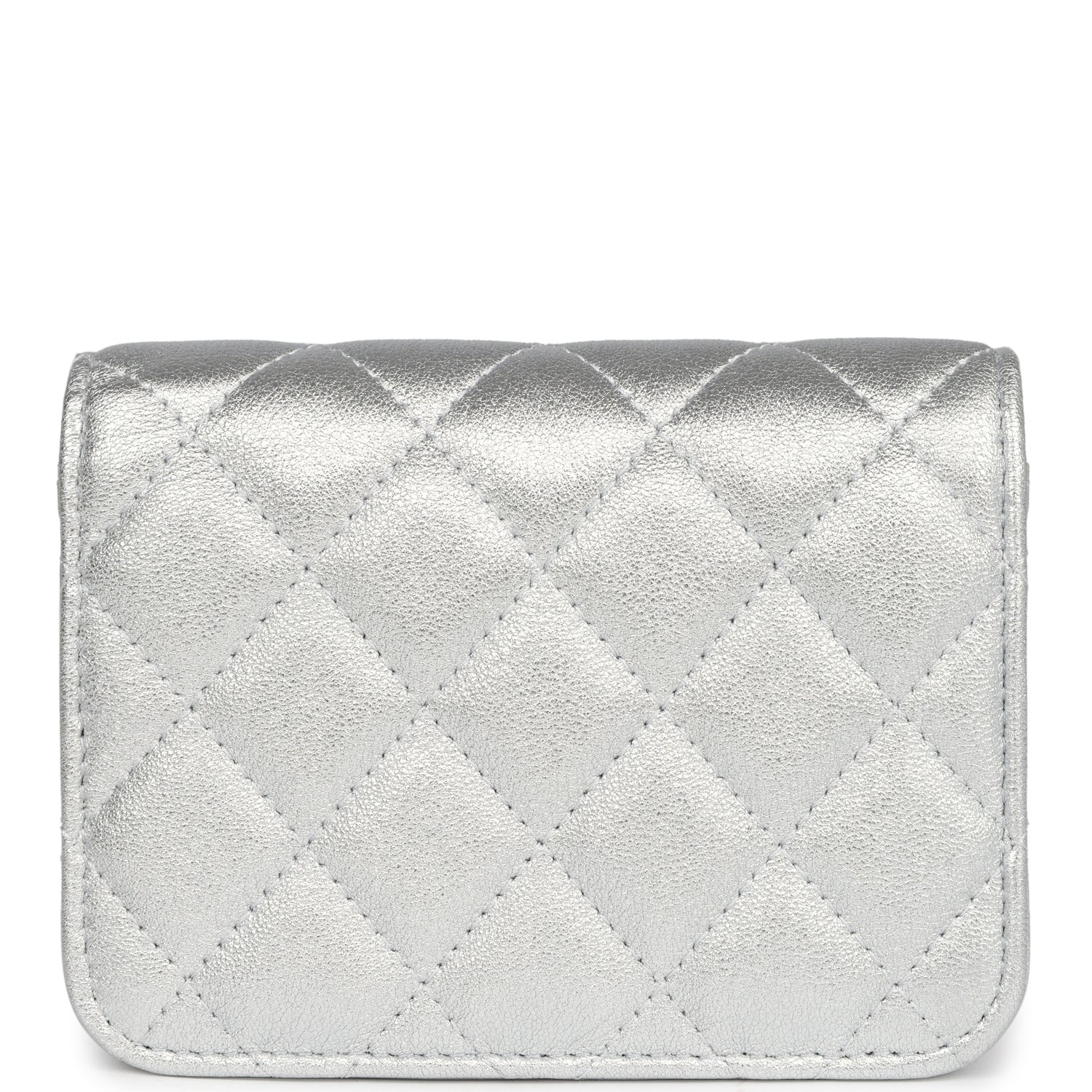 Chanel Crystal CC Walk Of Fame Clutch Wallet Silver Metallic Goatskin Silver Hardware